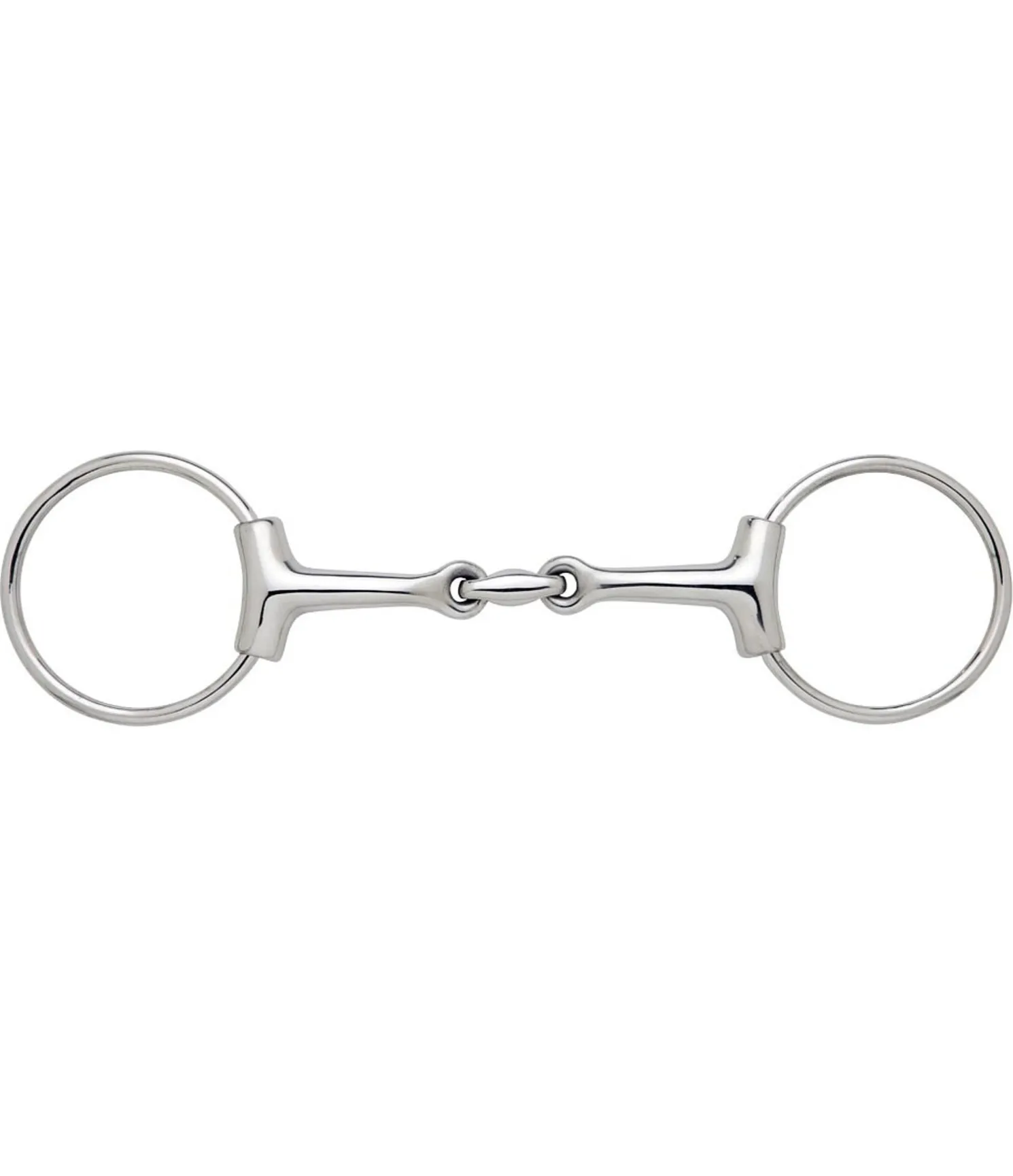Un mors qui réunit les avantages du mors simple (les anneaux mobiles favorisent la mastication) et du mors à olives (protection des commissures et risque amoindri de rentrer dans la bouche). Acier inoxydable, canons pleins. Épaisseur 15 mm. Lisses et résistants, les mors en inox sont très appréciés. Ils sont faciles à nettoyer et à entretenir.