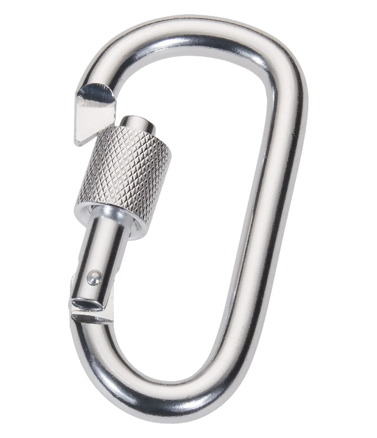 Mousqueton avec fermeture de sécurité. Nickelé.