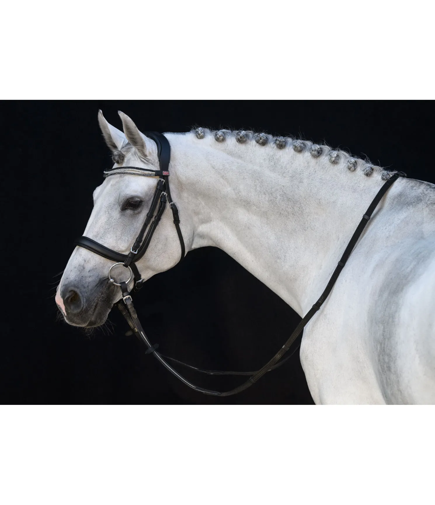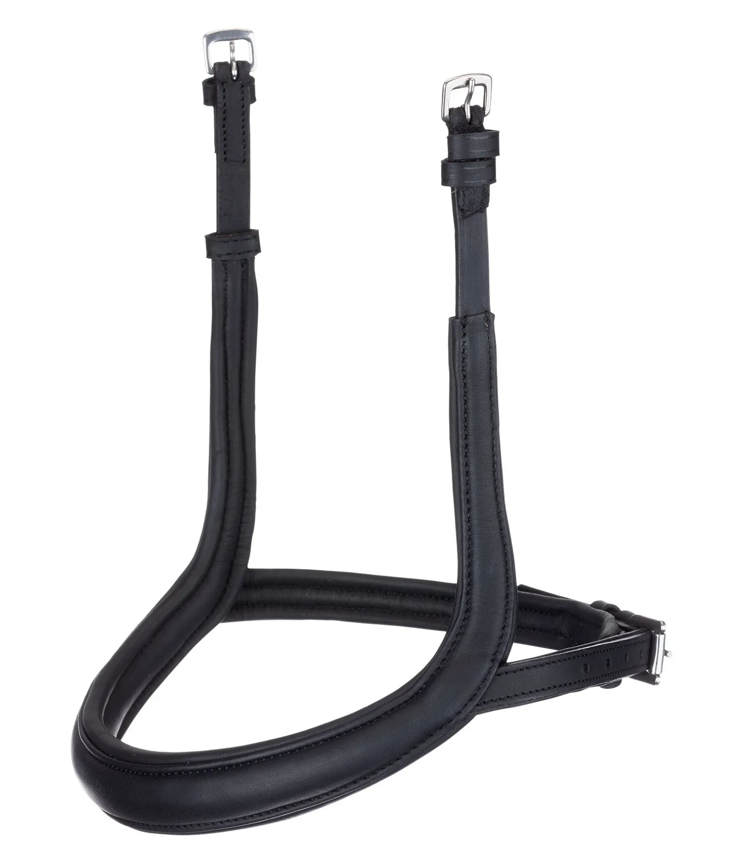 Muserolle anatomique sans noseband, afin d’éviter les pressions sur l’os du nez et de favoriser la mastication. Muserolle en cuir souple doux très travaillé. Tous les autres éléments sont en cuir gras de grande qualité. Bouclerie argentée.
