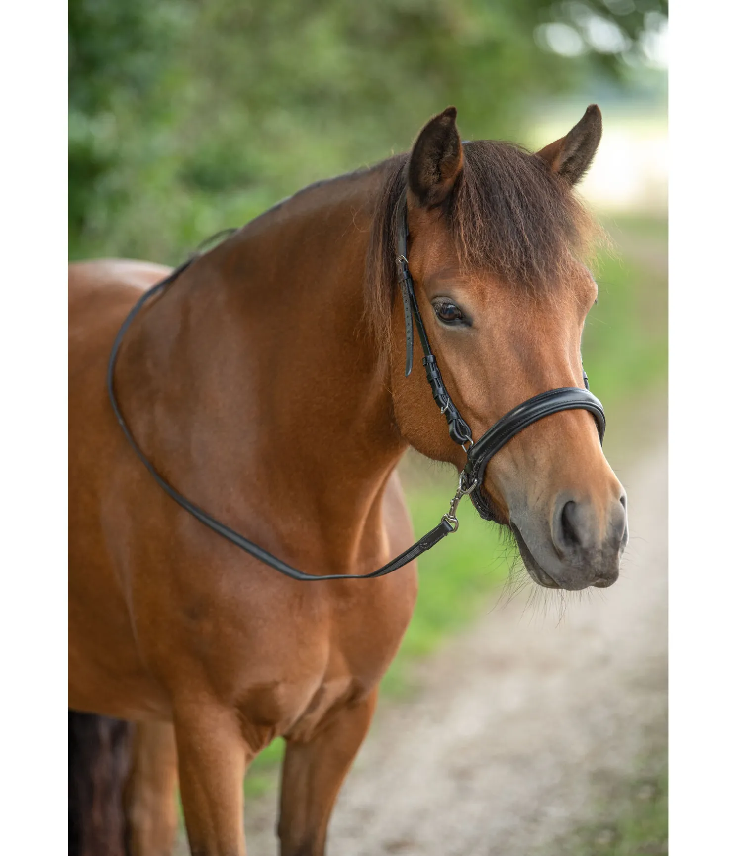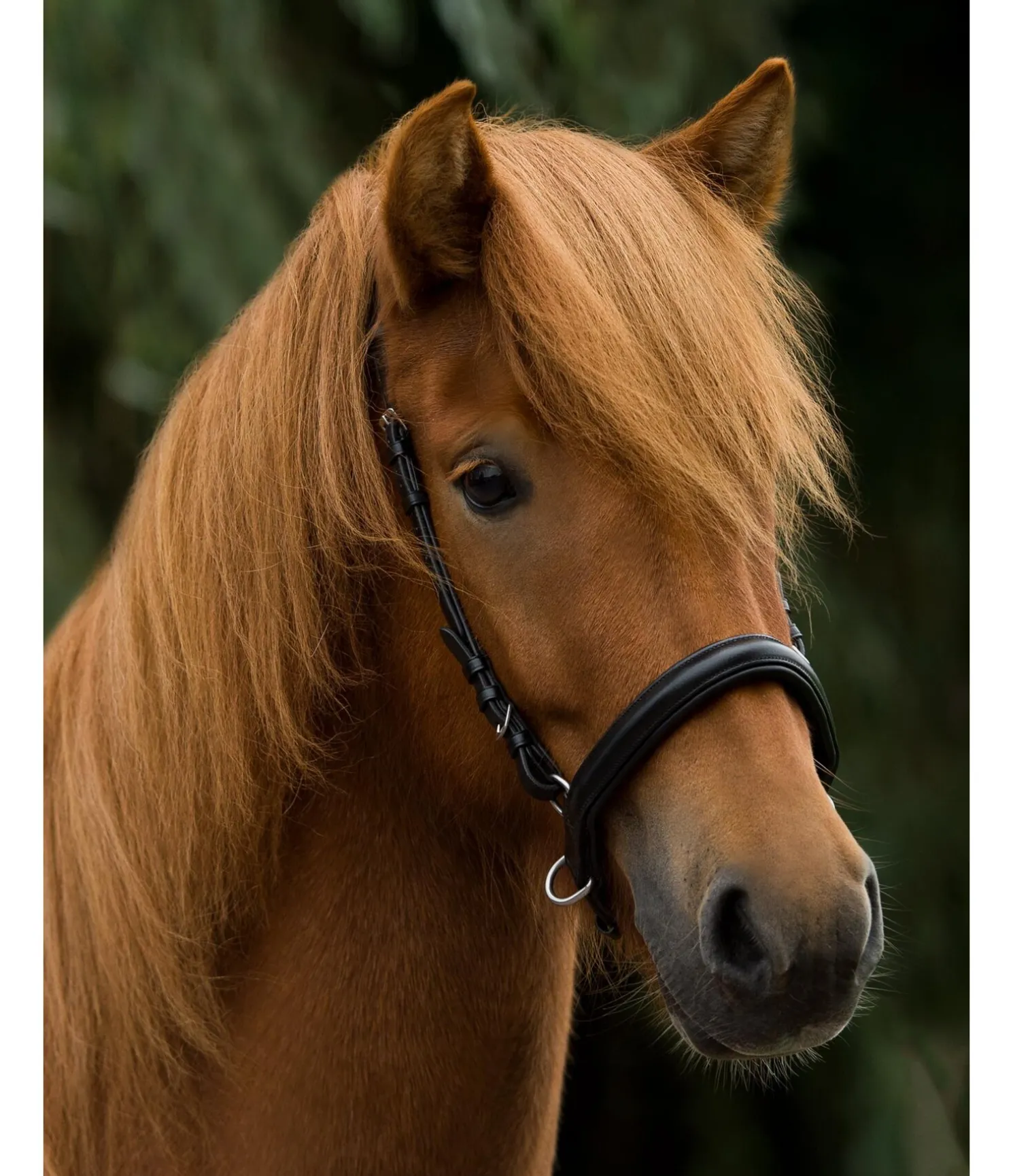 Muserolle de sidepull au rembourrage moelleux, idéale pour une monte douce sans embouchure. Une âme souple à l’intérieur empêche la muserolle de glisser.