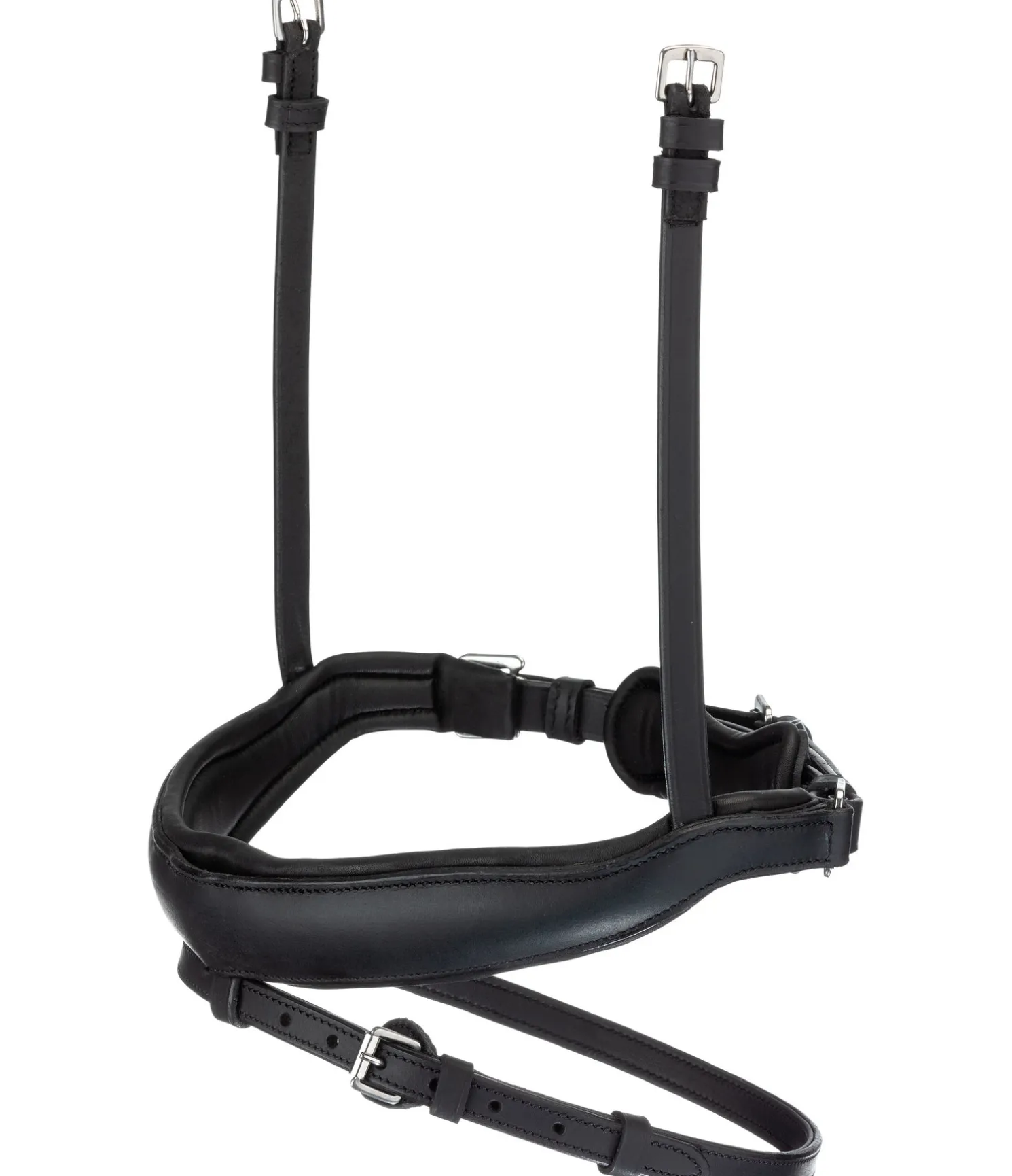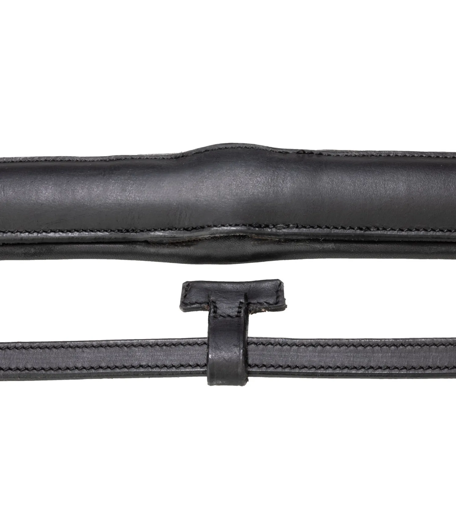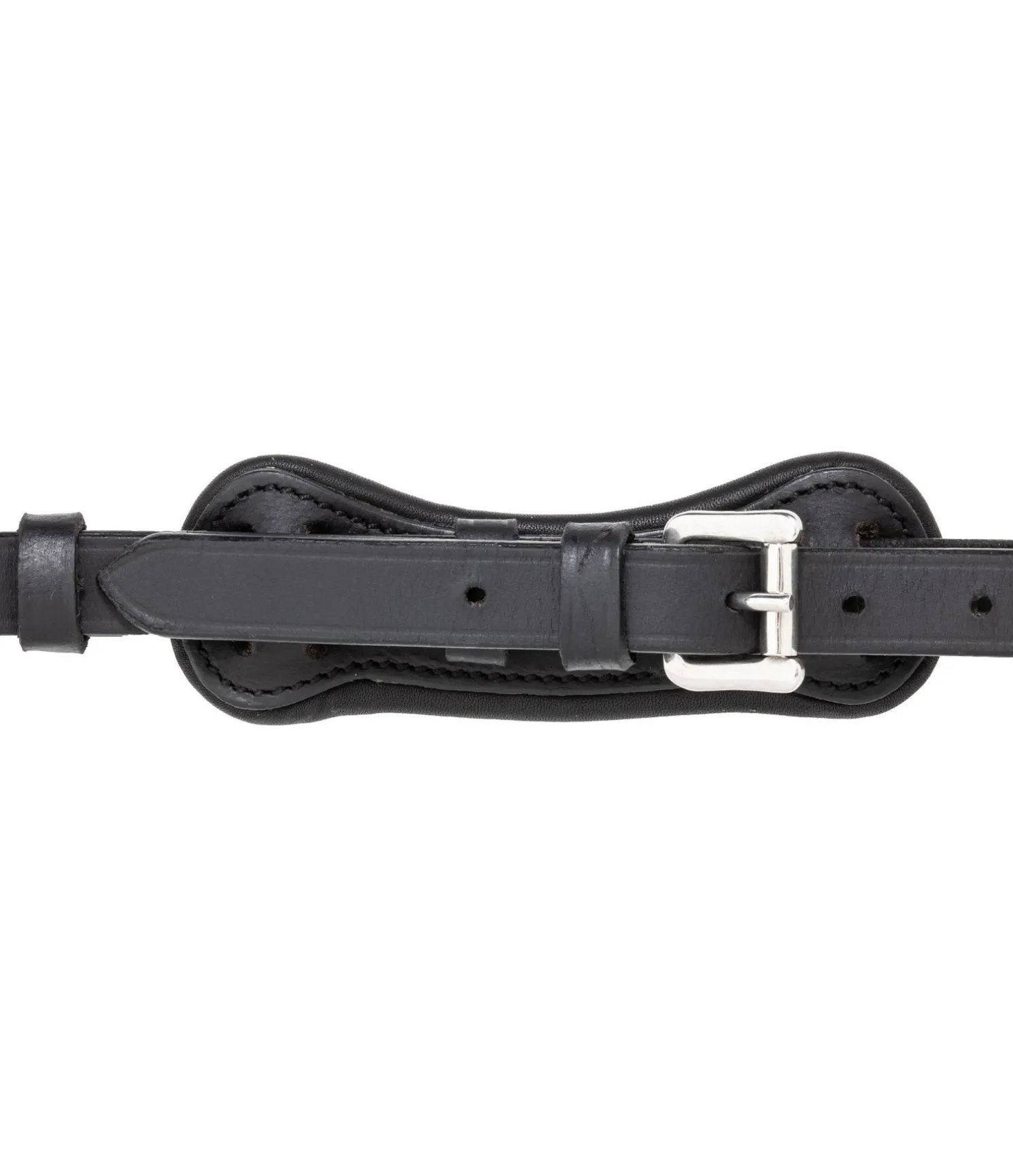 Muserolle suédoise large anatomique avec noseband amovible. La lanière en forme de T permettant de fixer le noseband peut être enlevée lorsqu’elle ne sert pas. Cela permet de ne pas laisser une boucle de cuir disgracieuse lorsque le noseband n’est pas fixé à la muserolle. Muserolle, noseband et pad de menton avec doublure moelleuse en cuir véritable. Cuir gras de qualité, particulièrement souple. Bouclerie argentée. Parfaitement assortie aux autres articles de la série CLARIDGE HOUSE Mix & Match PRO. En combinant les articles de la série CLARIDGE HOUSE Mix & Match PRO, vous pouvez créer le bridon de vos rêves.
