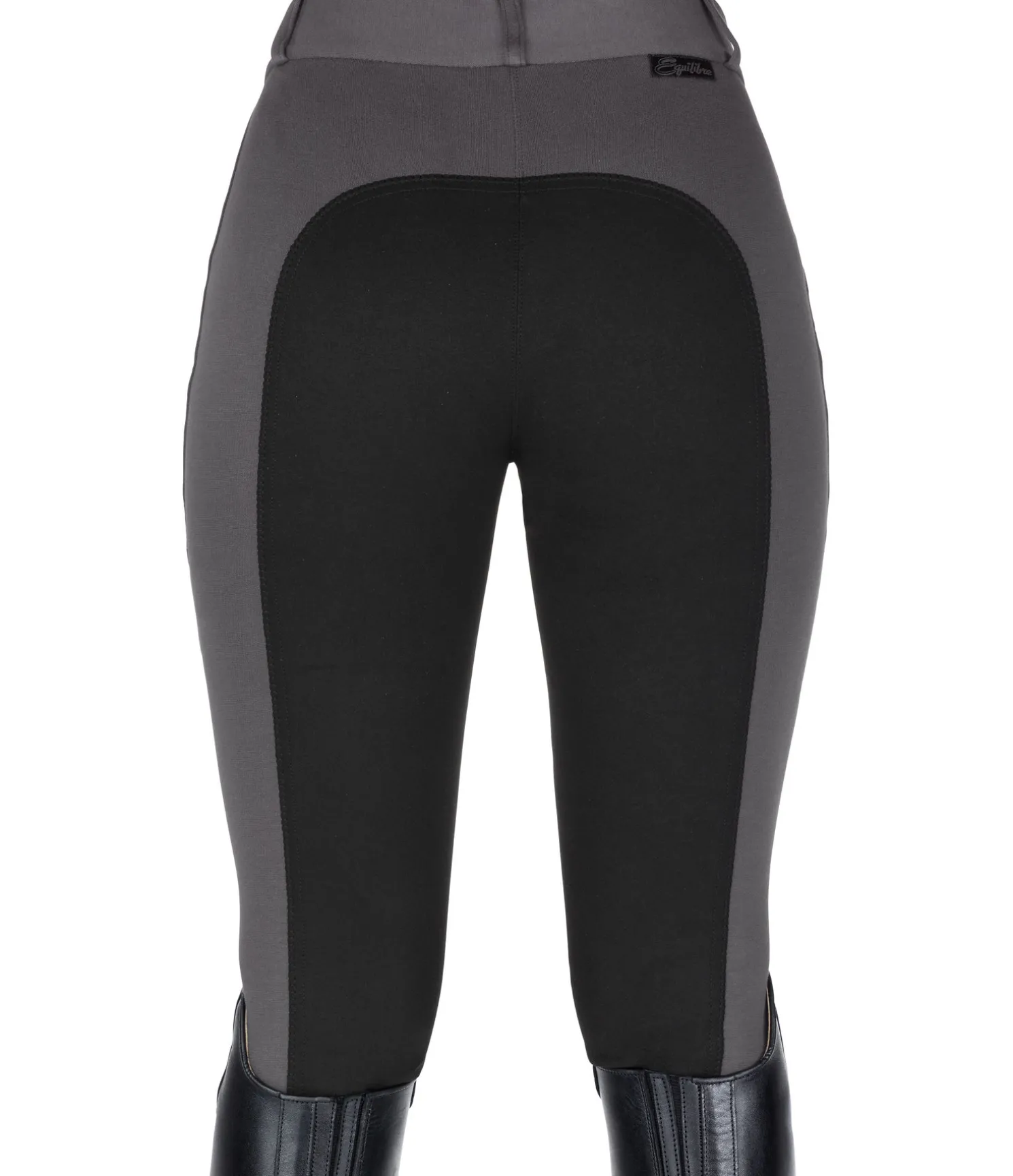 Pantalon d’équitation basique avec fond intégral en synthétique. Matière très extensible et extrêmement douce. 1 poche zippée avant. Large ceinture élastiquée avec 2 boutons. Bas de jambe extensible, sans patte auto-agrippante. 95 % coton, 5 % élasthanne.