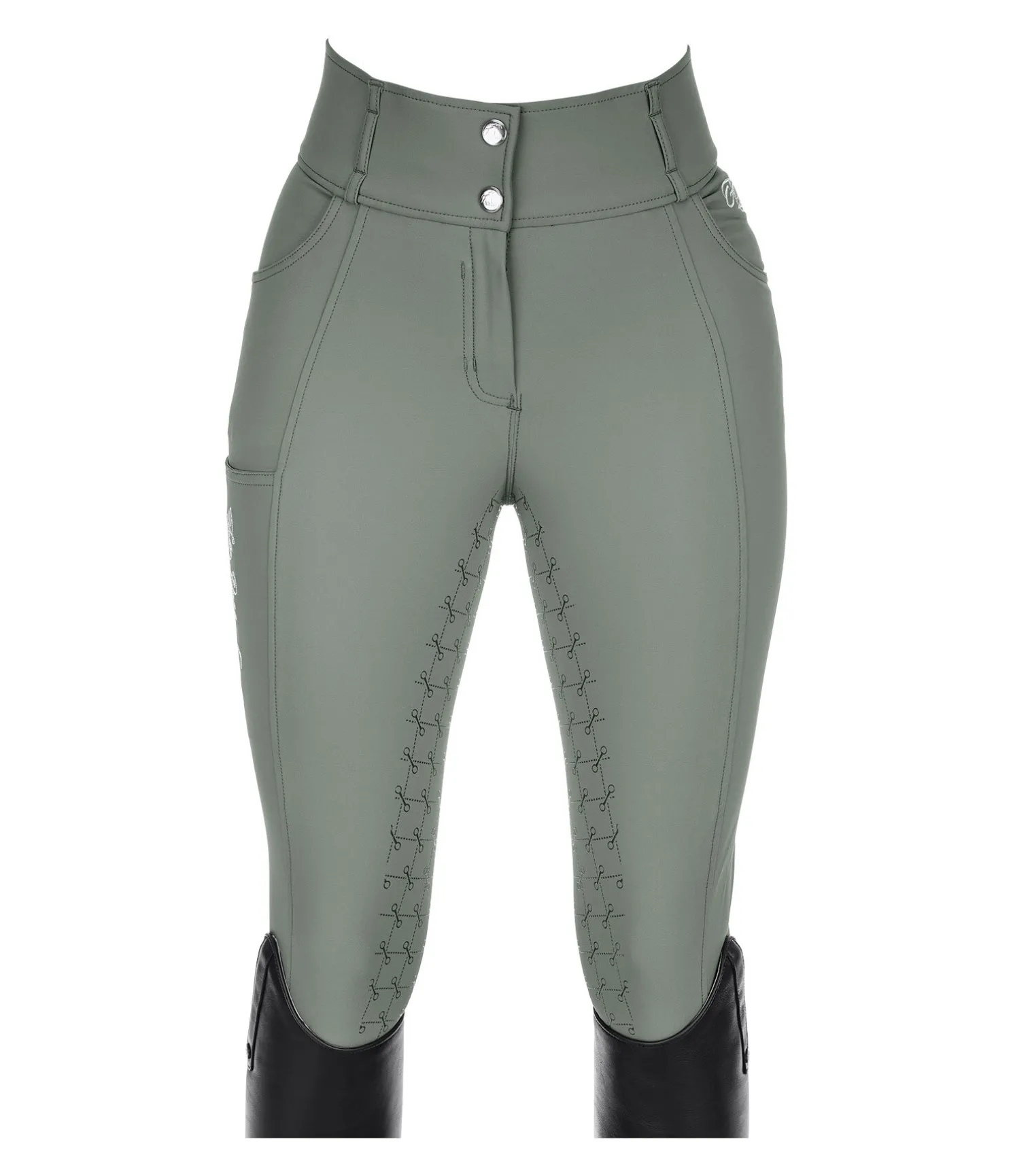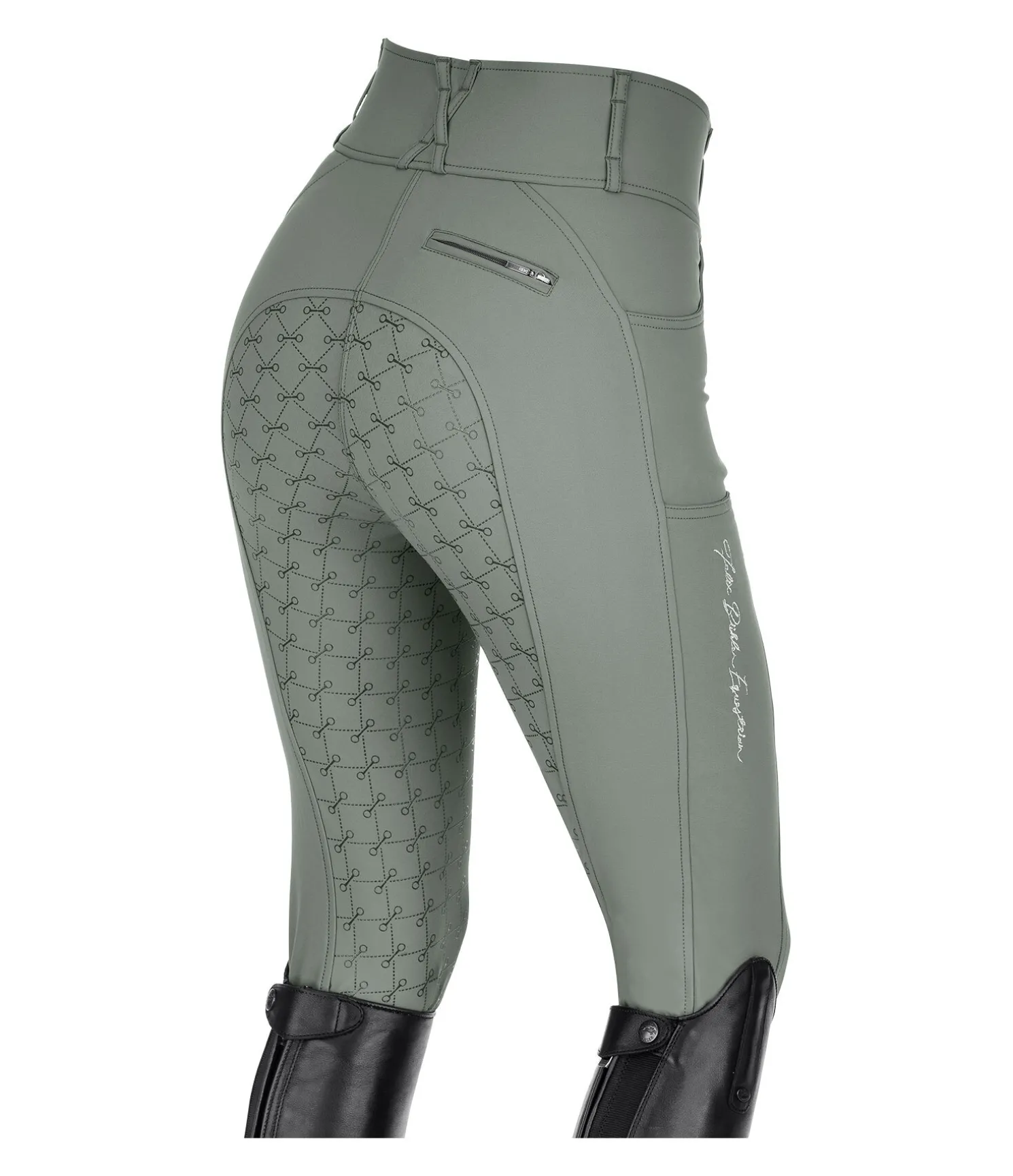 Pantalon d’équitation sportswear et extensible, à fond intégral grip en silicone avec motifs de mors. Matière déperlante, respirante et à séchage rapide. Broderie Felix Bühler sur la jambe. Poche arrière zippée et poche pour téléphone portable sur la cuisse. Deux poches avant. Ceinture à passants extra large élastiquée avec 2 boutons. Aucune couture aux genoux. Bas de jambe extensible en stretch. 89 % nylon, 11 % élasthanne.