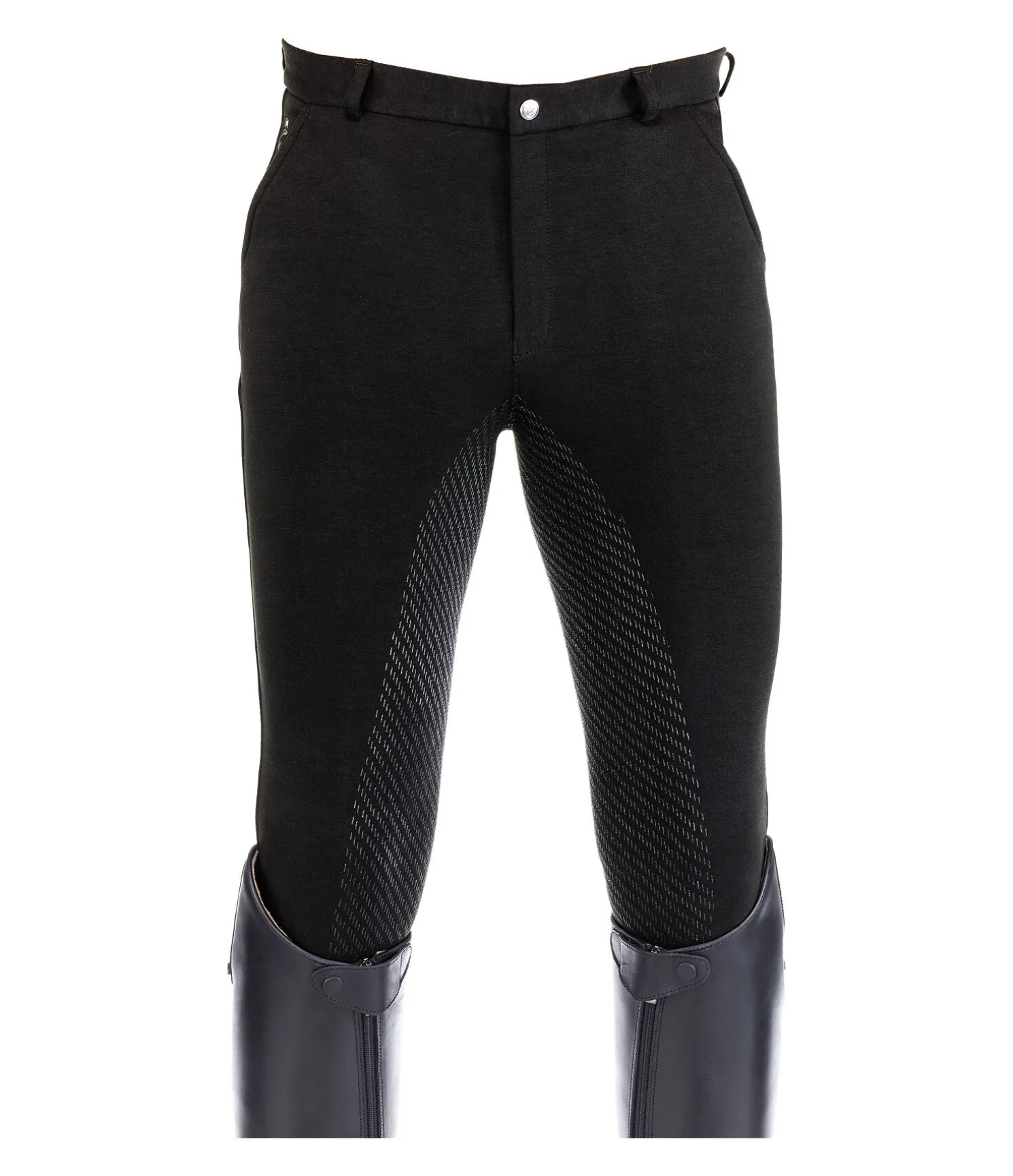 Pantalon d’équitation tendance avec fond intégral Grip siliconé. 2 poches avant et 2 poches arrière. Imprimé discret logo Equilibre. Bas de jambe extensible. Passants de ceinture. 95 % coton, 5 % élasthanne.