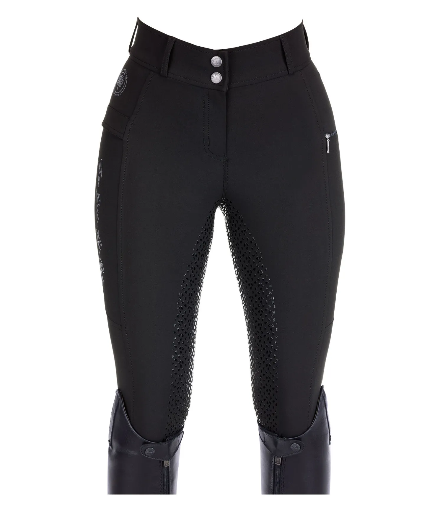 Durable et confortable ! Pantalon d’équitation à fond intégral grip en silicone extrêmement agréable à porter. Conçu principalement en stretch recyclé de grande qualité. Imprimés Felix Bühler Life Cycle. Matière respirante. Séchage rapide. 2 poches arrière et 2 poches latérales pour téléphone portable, dont une avec fermeture à glissière. Ceinture extra large avec 2 boutons. Aucune couture au niveau des genoux. Bas de jambe extensible en stretch. 89 % polyester, 11 % élasthanne.