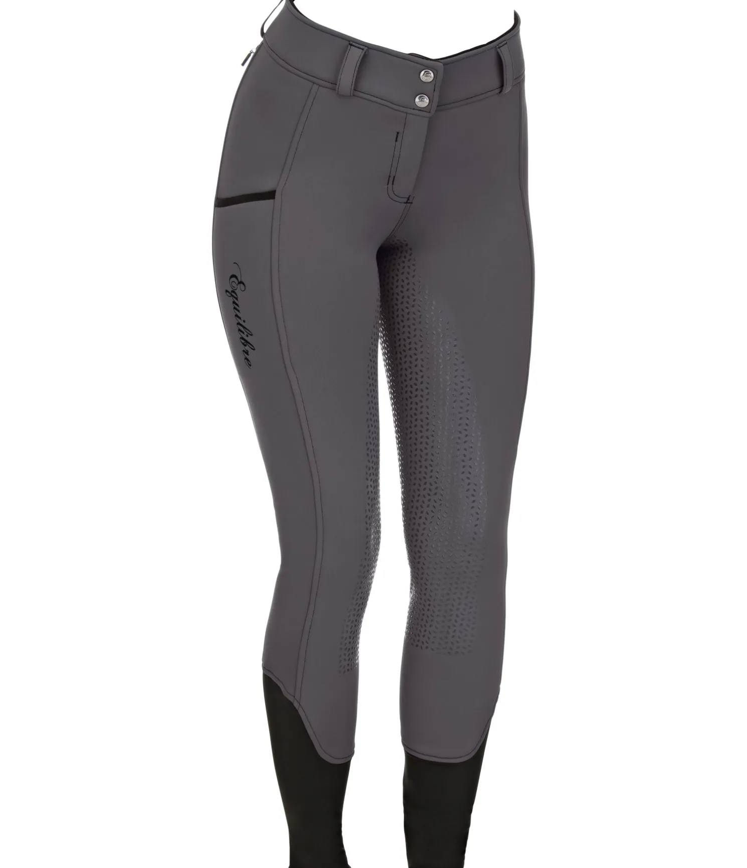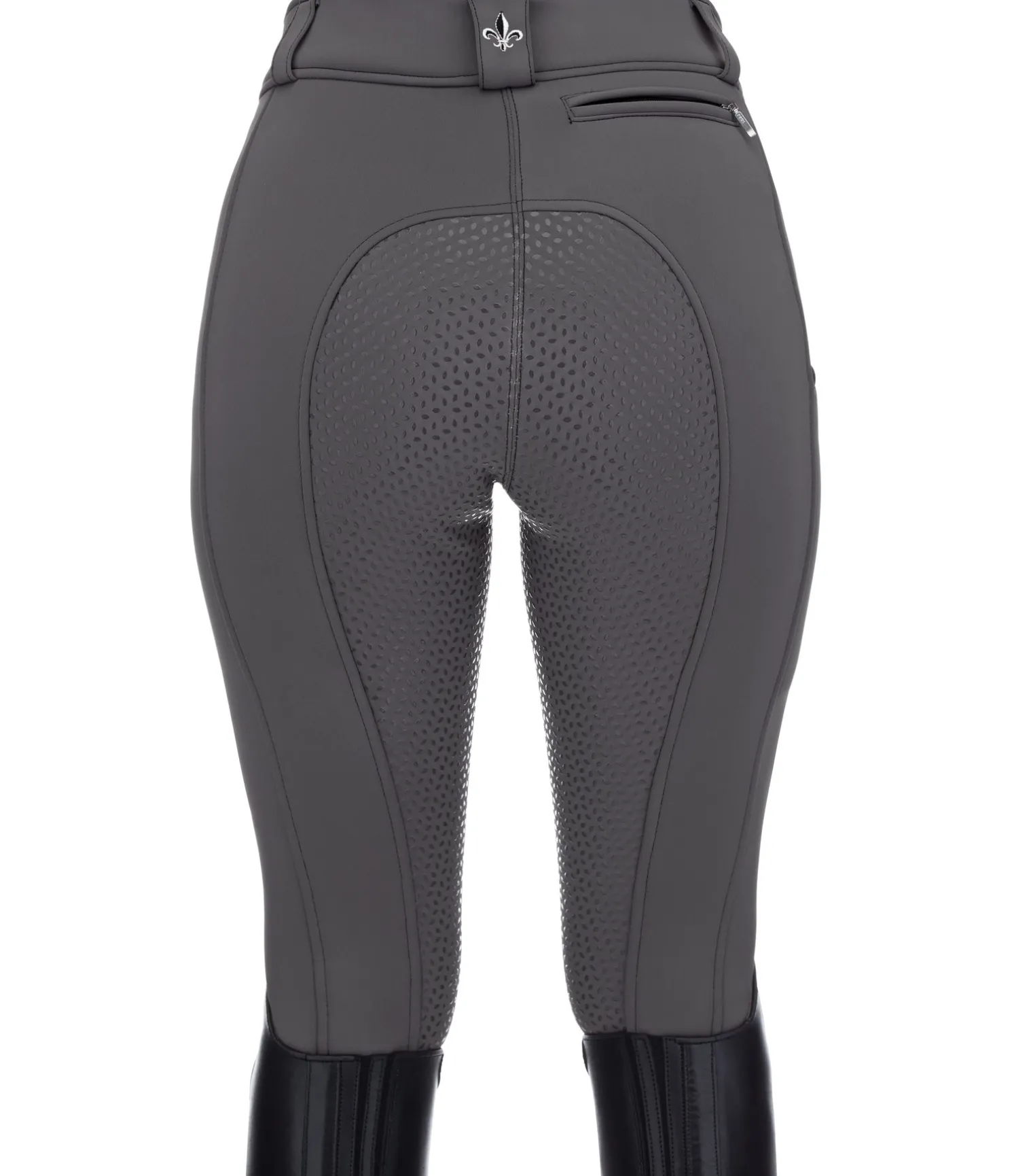 Legging d’équitation confortable avec fond intégral grip en silicone. Matière extensible lisse à l’extérieur et confortable à l’intérieur. Ceinture extra large élastiquée. Une poche zippée pour téléphone portable sur la cuisse. Bas de jambe extensible sans patte auto-agrippante. 86 % polyester, 14 % élasthanne.
