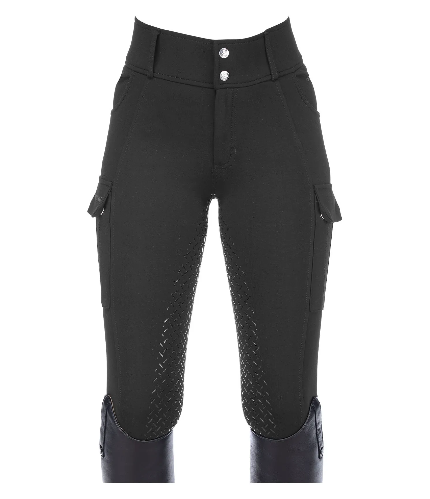 Pantalon d’équitation à fond intégral en silicone avec poches cargo. Imprimé holographique du logo sur une des poches et à l’arrière du pantalon. Matière stretch respirante et extensible dans 4 directions. 2 poches avant. Ceinture élastiquée avec passants. Bas de jambe extensible. 68 % viscose, 27 % nylon et 5 % élasthanne.
