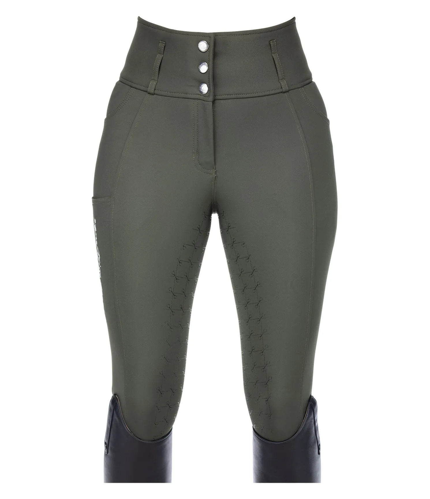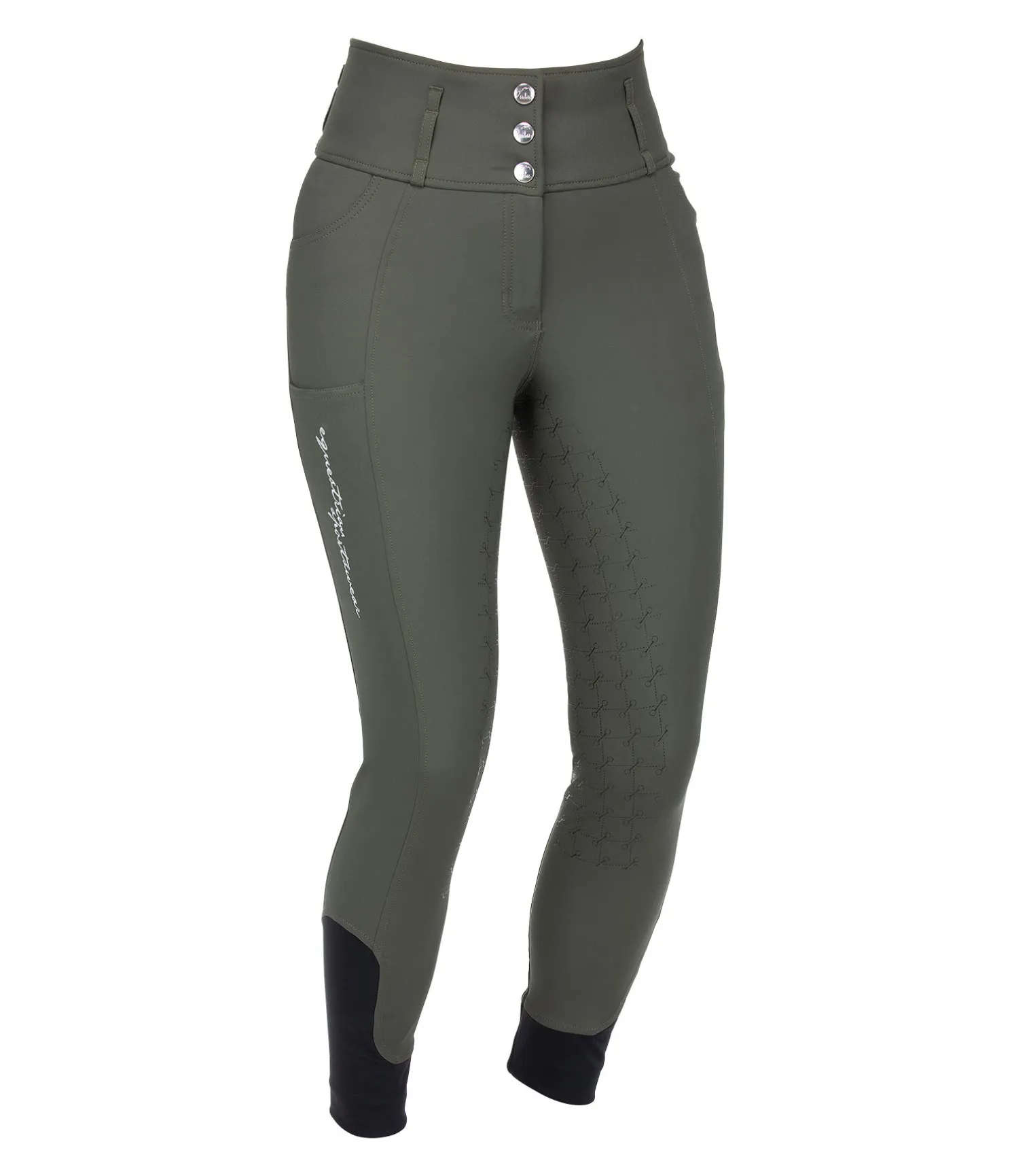 Pantalon d’équitation taille haute. Fond intégral grip avec motif de mors en silicone.Matière respirante et extensible. Séchage rapide. Ceinture large avec passants et trois boutons. Signature Felix Bühler sur la jambe. Une poche arrière zippée. Une poche pour téléphone portable sur la jambe. Deux poches latérales. Aucune couture aux genoux. Bas de jambe en stretch. Matière : 88 % polyamide, 12 % élasthanne.