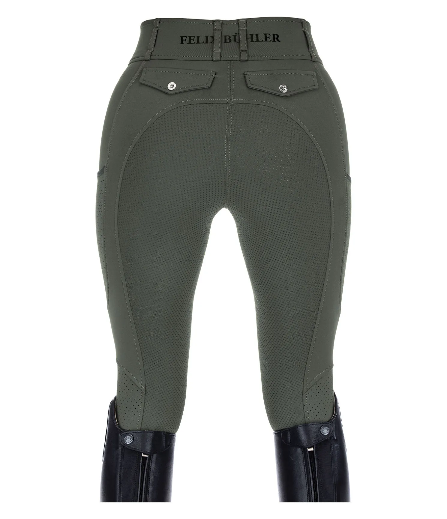 Pantalon d’équitation super confortable et léger à fond intégral grip en silicone. Stretch extensible dans 4 directions pour un effet sculptant garanti. Matière respirante à séchage rapide. Tissu très aéré grâce à la découpe laser sur les jambes. Large ceinture avec passants et deux boutons. Une poche pour téléphone portable sur chaque jambe. Deux fausses poches arrière. Aucune couture sur les genoux. Badges Felix Bühler. 78 % polyester, 22 % élasthanne.