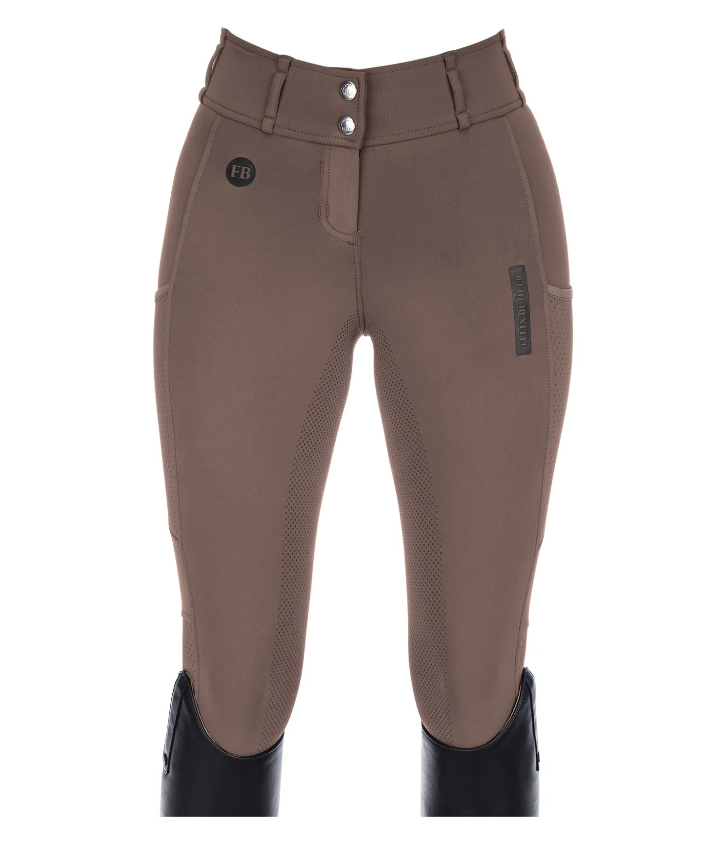 Pantalon d’équitation super confortable et léger à fond intégral grip en silicone. Stretch extensible dans 4 directions pour un effet sculptant garanti. Matière respirante à séchage rapide. Tissu très aéré grâce à la découpe laser sur les jambes. Large ceinture avec passants et deux boutons. Une poche pour téléphone portable sur chaque jambe. Deux fausses poches arrière. Aucune couture sur les genoux. Badges Felix Bühler. 78 % polyester, 22 % élasthanne.