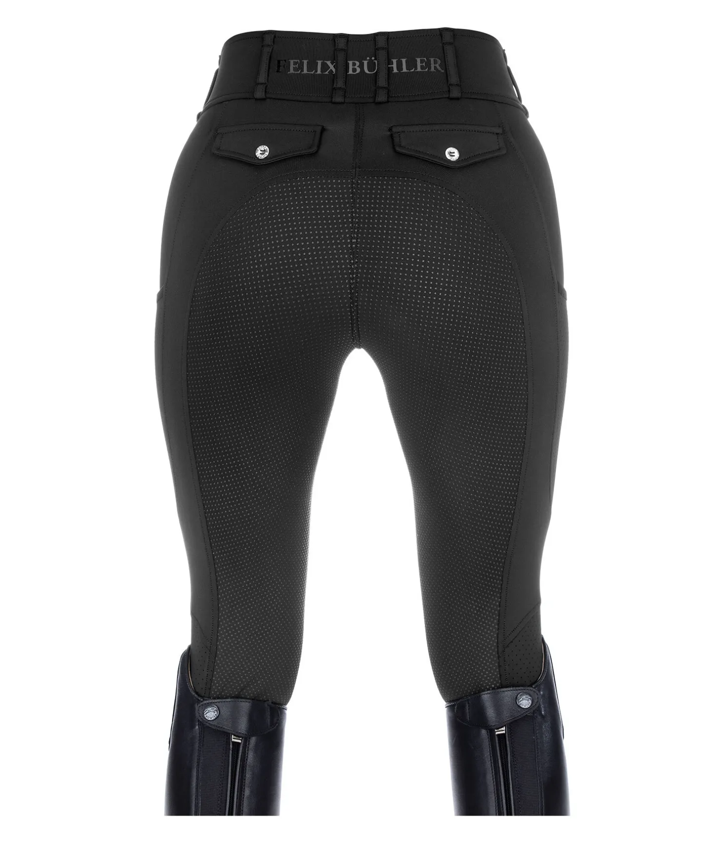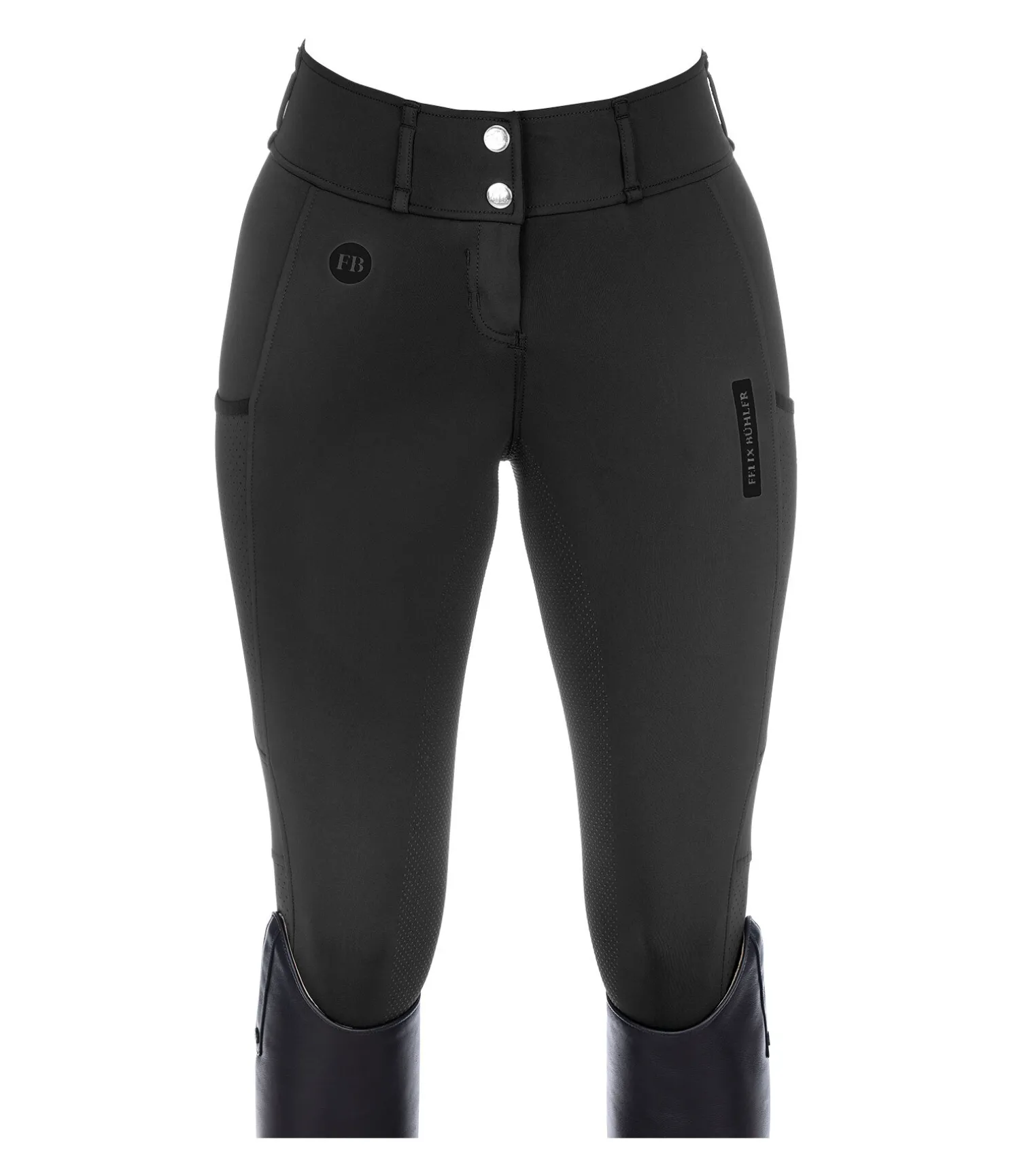Pantalon d’équitation super confortable et léger à fond intégral grip en silicone. Stretch extensible dans 4 directions pour un effet sculptant garanti. Matière respirante à séchage rapide. Tissu très aéré grâce à la découpe laser sur les jambes. Large ceinture avec passants et deux boutons. Une poche pour téléphone portable sur chaque jambe. Deux fausses poches arrière. Aucune couture sur les genoux. Badges Felix Bühler. 78 % polyester, 22 % élasthanne.