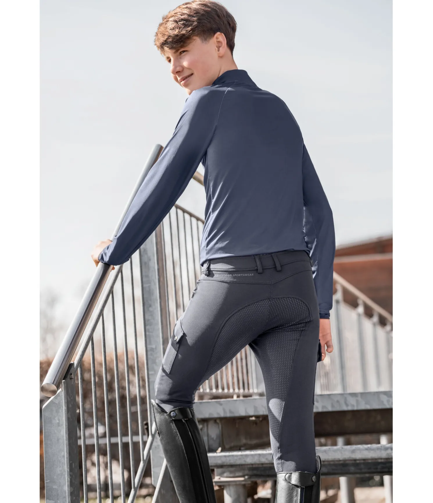 Pantalon d’équitation tendance au confort inégalé. La ceinture extra-basse en fait un pantalon mixte. Look sportif grâce aux 2 poches cargo latérales avec boutons-pression. Fond intégral en silicone. Bas de jambe extensible. 75 % polyester, 25 % élasthanne.
