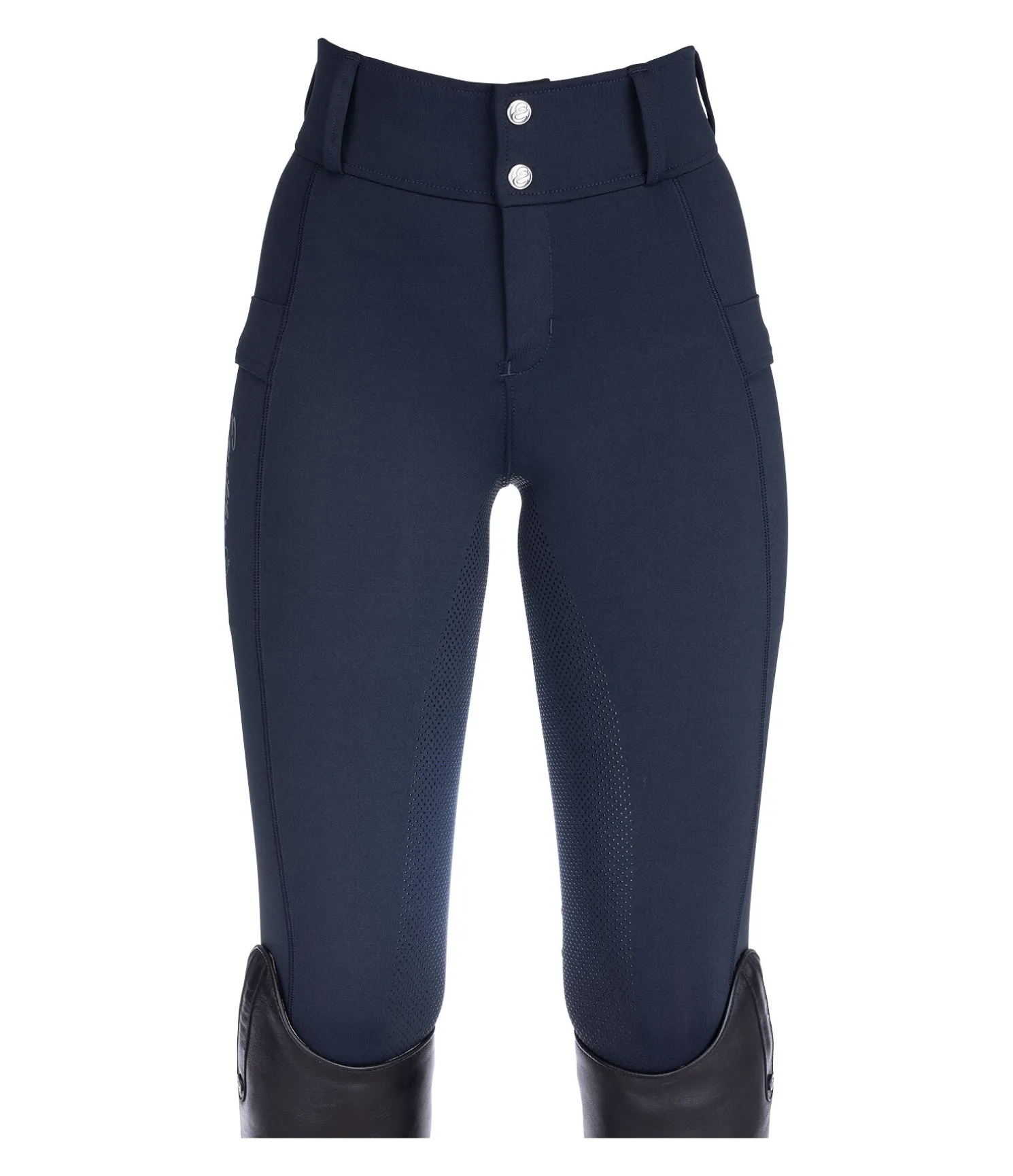 Pantalon d’équitation à fond intégral grip en silicone. Sportswear. Matière stretch respirante et extensible dans 4 directions. Poches latérales pour téléphone portable avec logo imprimé. Bas de jambe extensible. Ceinture large avec passants. Logo scintillant à l’arrière. Disponible dans des tailles intermédiaires. 89 % polyester, 11 % élasthanne.