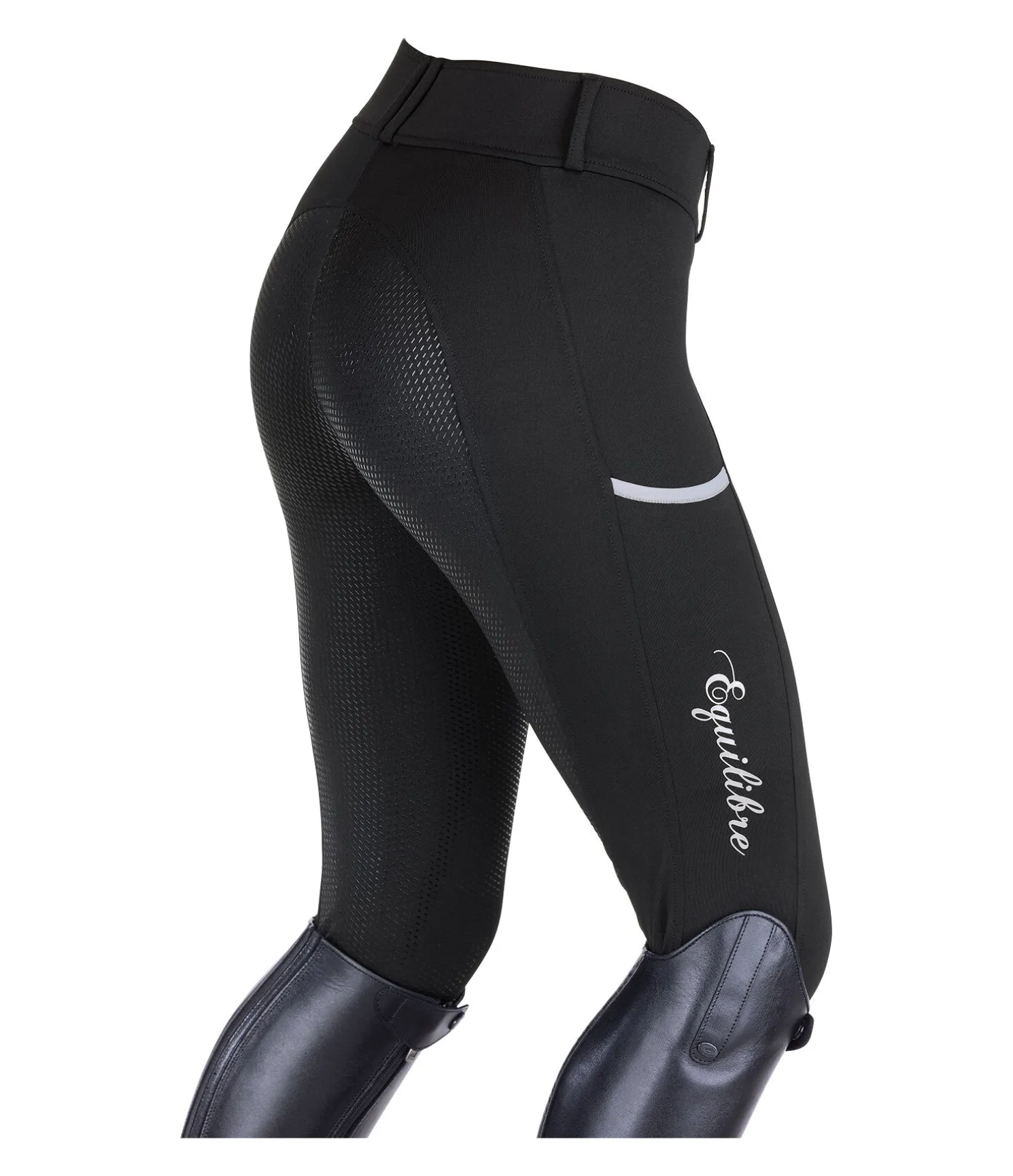 Notre best-seller ! Pantalon d’équitation super confortable avec fond intégral grip en silicone. Matière stretch respirante, extensible dans 4 directions. Séchage rapide. Ceinture large. Poche pour téléphone portable sur la cuisse. Aucune couture au niveau des genoux. Bas de jambe extensible. 89 % polyester, 11 % élasthanne.