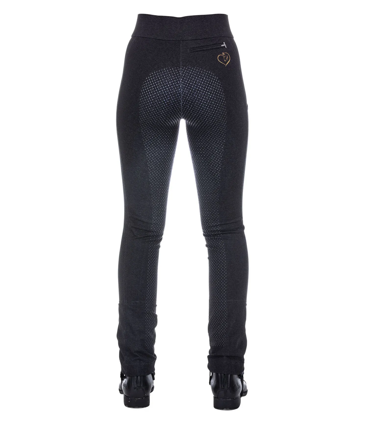 Pantalon d’équitation jodhpur à fond intégral grip en silicone. Une poche latérale pour téléphone portable avec logo imprimé et une poche arrière zippée avec jolie broderie discrète. Ceinture élastiquée. Bas de jambe évasé. 72 % coton, 22 % polyamide et 6 % élasthanne.