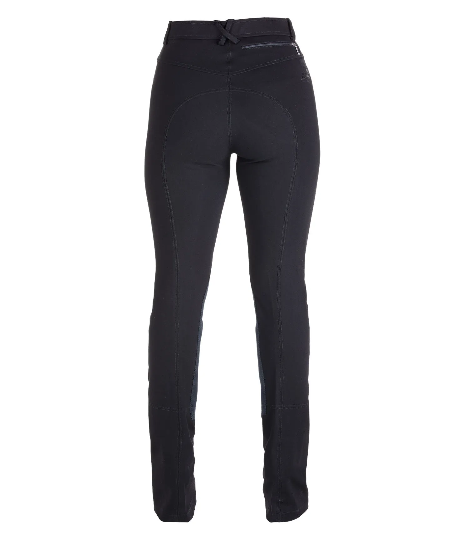 Pantalon d’équitation jodhpur technique avec basanes en synthétique. Matière stretch respirante et facile d’entretien. Séchage rapide. Taille mi-haute. Poche arrière zippée. Sous-pieds élastiqués pour empêcher le pantalon de remonter. 68 % viscose, 27 % nylon, 5 % élasthanne.