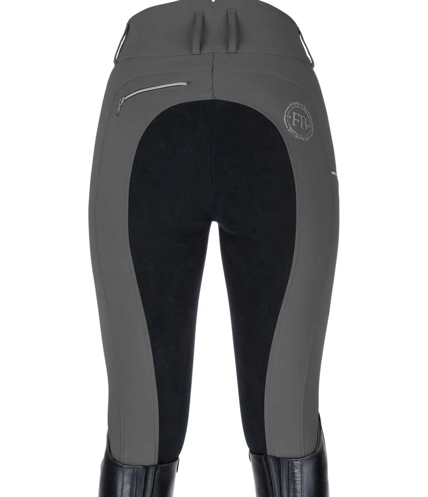 Joli pantalon d’équitation classique. Fond intégral imitation cuir. Taille haute. Matière extensible, déperlante, respirante, résistante à la déchirure et facile d’entretien. Poche zippée arrière et poche latérale zippée pour téléphone portable. Ceinture élastiquée. Bas de jambe extensible en matière stretch. Imprimé logo Felix Bühler. 93 % nylon, 7 % élasthanne.