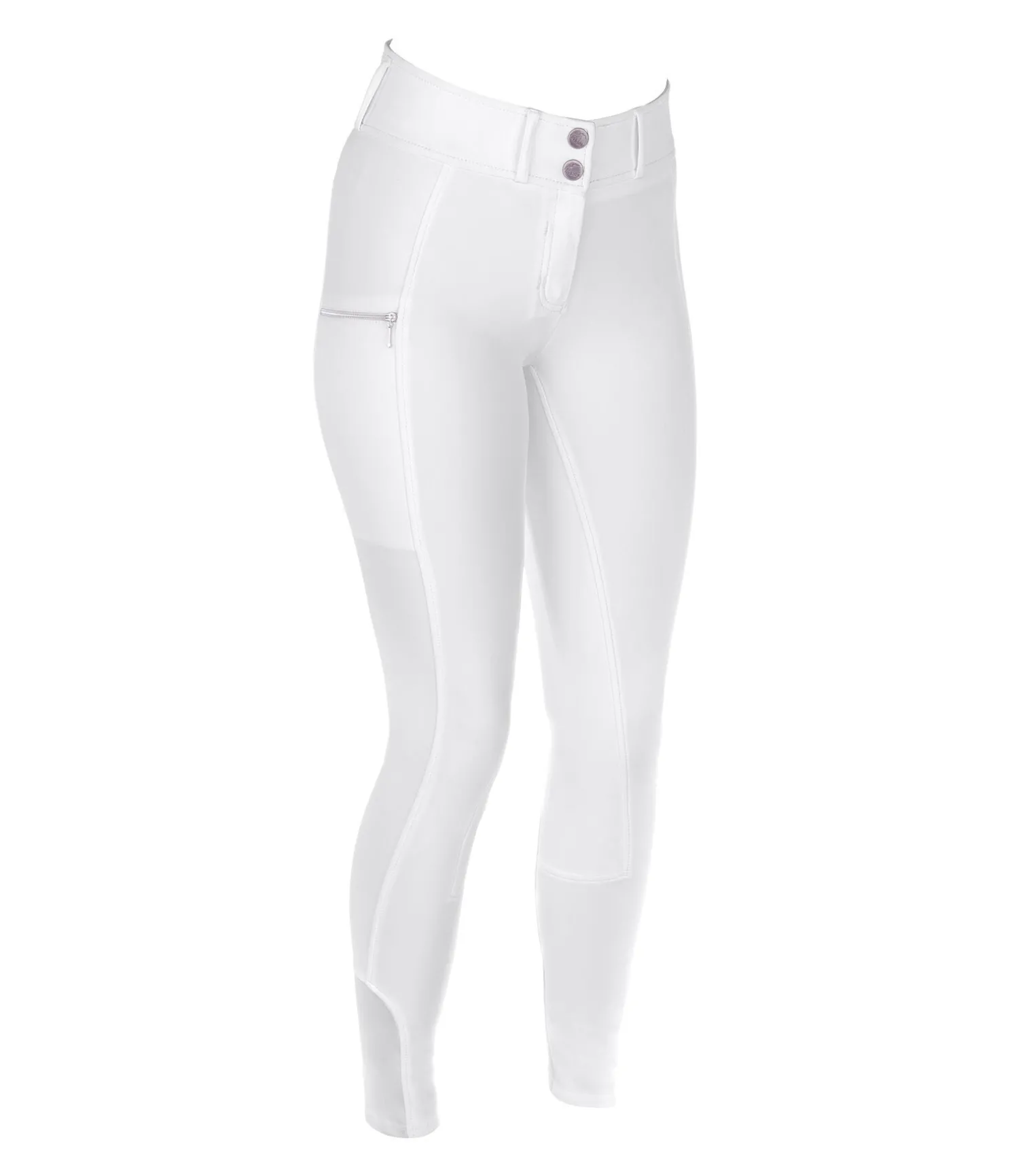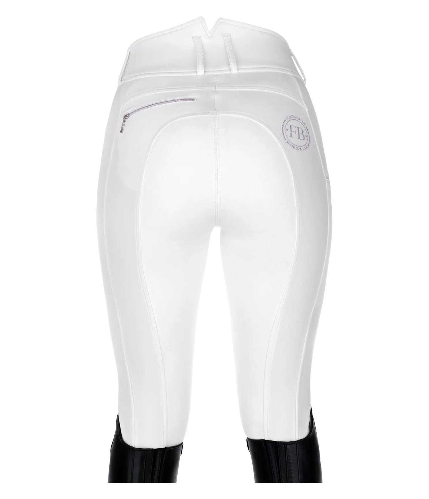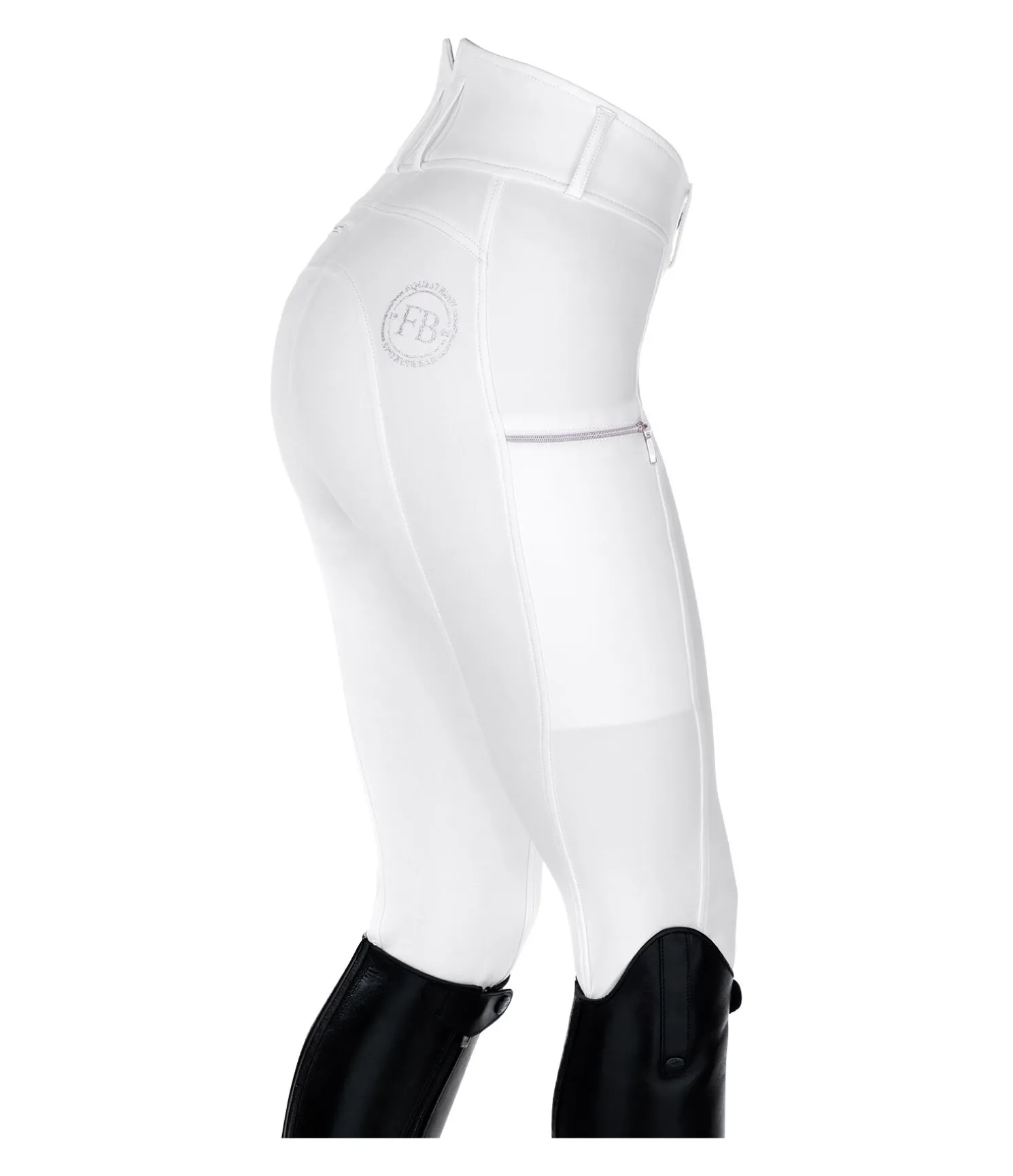 Joli pantalon d’équitation classique. Fond intégral imitation cuir. Taille haute. Matière extensible, déperlante, respirante, résistante à la déchirure et facile d’entretien. Poche zippée arrière et poche latérale zippée pour téléphone portable. Ceinture élastiquée. Bas de jambe extensible en matière stretch. Imprimé logo Felix Bühler. 93 % nylon, 7 % élasthanne.