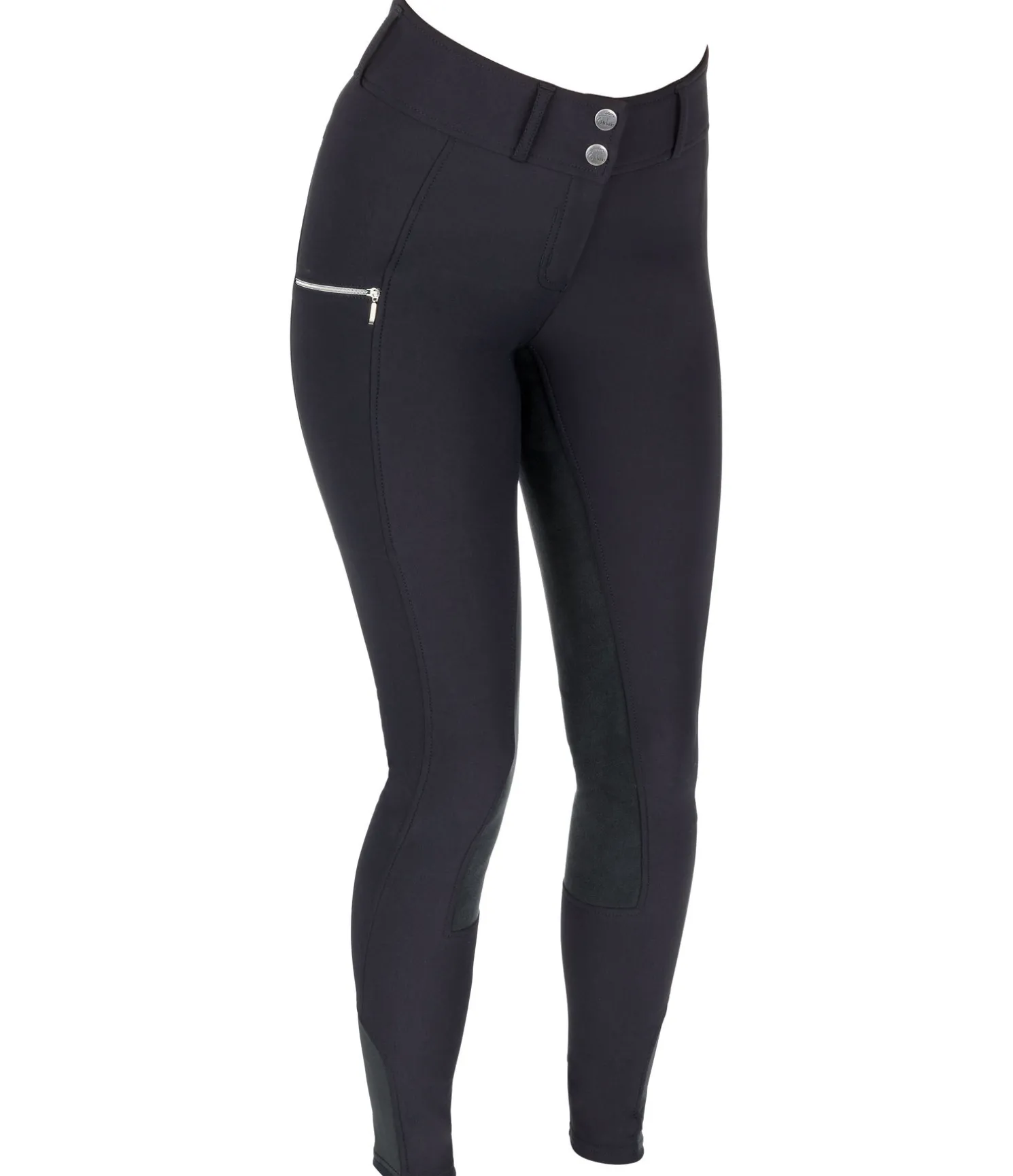 Joli pantalon d’équitation classique. Fond intégral imitation cuir. Taille haute. Matière extensible, déperlante, respirante, résistante à la déchirure et facile d’entretien. Poche zippée arrière et poche latérale zippée pour téléphone portable. Ceinture élastiquée. Bas de jambe extensible en matière stretch. Imprimé logo Felix Bühler. 93 % nylon, 7 % élasthanne.
