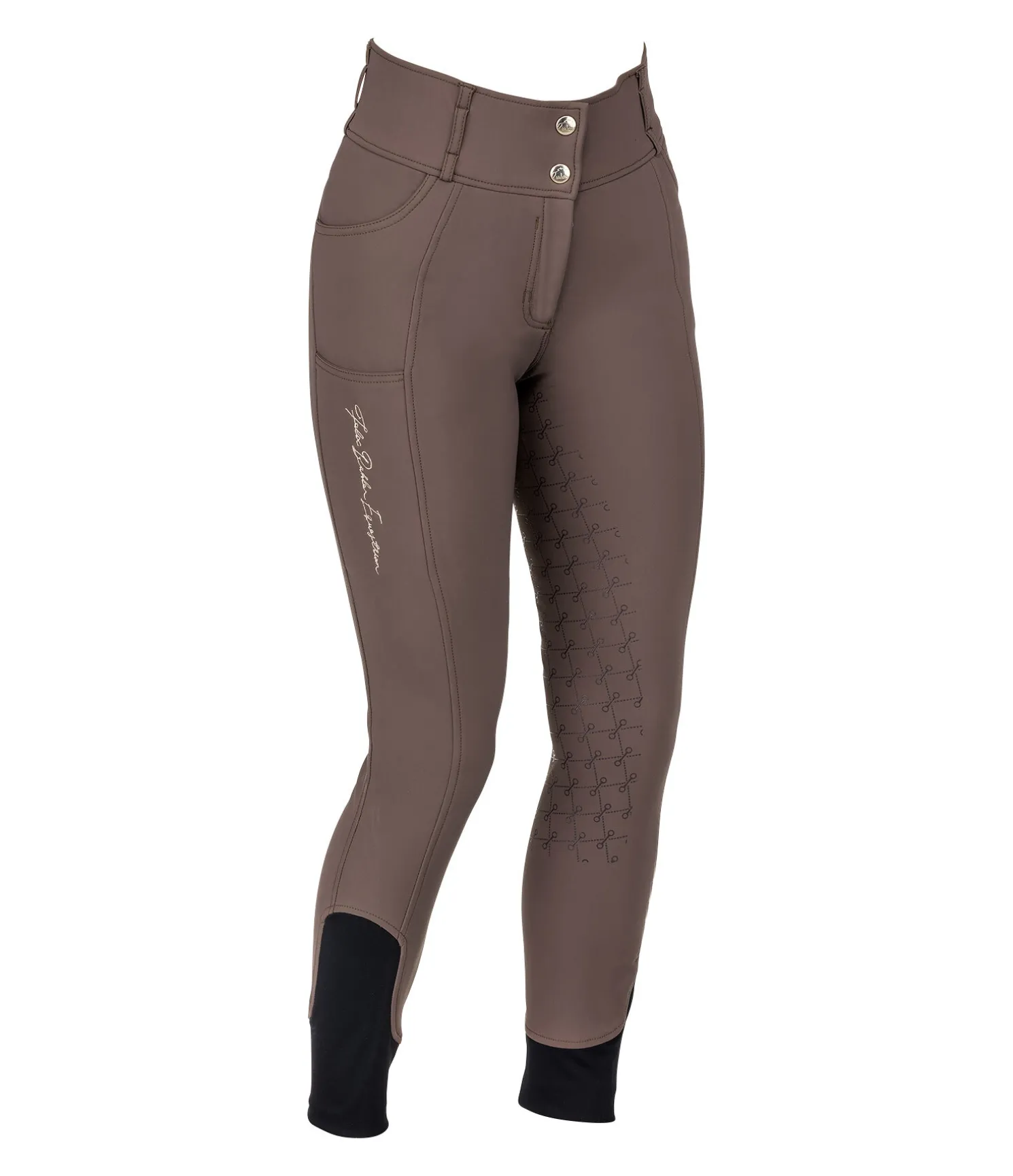 Pantalon d’équitation chaud et extensible. Fond intégral grip en silicone avec motifs de mors. Matière respirante et coupe-vent. Intérieur confortable. Broderie Felix Bühler sur la jambe. Une poche arrière zippée, une poche latérale sur la cuisse pour téléphone portable et deux poches avant. Large ceinture élastiquée avec 2 boutons. Aucune couture au niveau des genoux. Bas de jambe extensible en matière stretch. 77 % polyamide, 23 % élasthanne.