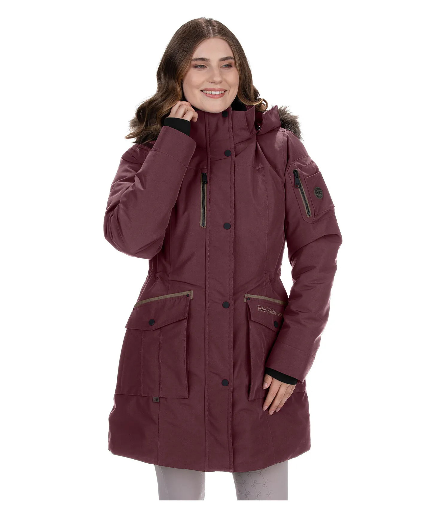 Parka d’équitation très chaude, solide et résistante aux intempéries. Capuche réglable et amovible par fermeture à glissière, pouvant être fixée dans le dos. Sa bordure en fausse « fourrure » est elle aussi amovible. Imperméable (10.000 mm), coupe-vent et respirante. Garnissage matelassé chaud en imitation duvet doux. 2 grandes poches à rabat avec poche latérale. 1 poche de poitrine zippée, 1 poche zippée sur la manche, 1 poche intérieure zippée, fermeture à glissière double sens dissimulée devant, 2 fentes cavalières zippées avec sous-patte à l’arrière, cordon de serrage à la taille, bas des manches avec finition bord-côte coupe-vent. Broderie et badge Felix Bühler. 100 % polyester.