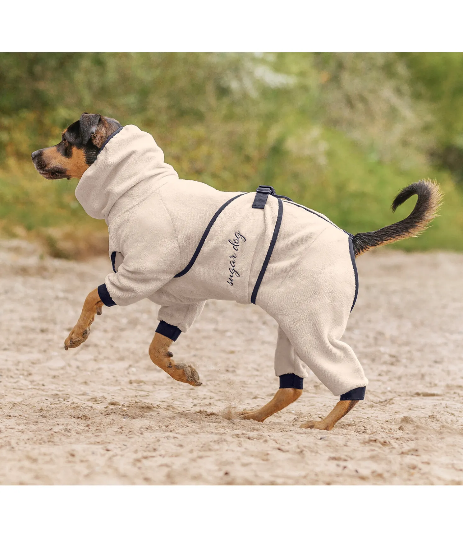 Idéal pour les chiens nageurs ou les jours de pluie : combinaison peignoir pour chien en tissu éponge doux à séchage rapide, absorbant l’humidité. Rabat ventral et col montant pour une protection intégrale. Protège la voiture et la maison de l’humidité et des salissures. Rabat ventral avec fermeture à clip réglable. Fermeture à glissière le long du dos pour faciliter l’enfilage et le retrait. Ouvrir les clips et la fermeture à glissière, laisser le chien passer la tête dans le col puis glisser délicatement ses pattes dans les ouvertures prévues à cet effet. Refermer ensuite la fermeture à glissière et les clips. Régler si besoin la longueur du rabat ventral afin que le peignoir tienne bien en place. 80 % polyester, 20 % nylon.