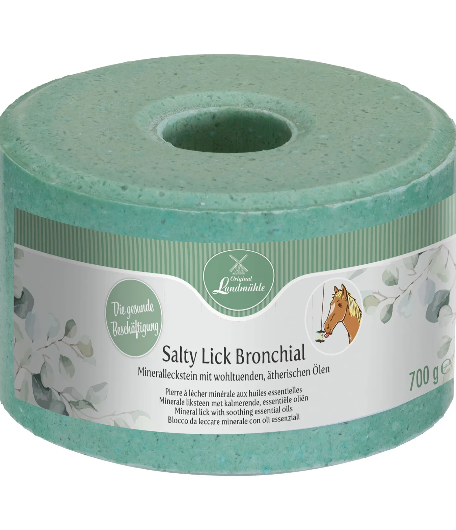 Une occupation saine : la pierre à lécher minérale sans mélasse, sans céréales et sans glucose. À base de sel marin méditerranéen. Avec des huiles essentielles de menthe et d’eucalyptus favorisant l’expectoration pour renforcer le système des voies respiratoires. Riche en iode naturel, en minéraux, en oligo-éléments et en vitamines essentielles. Peut aider à réduire l’agitation, l’ennui et à diminuer le stress qui en résulte, surtout en cas de repos au box. Complète une alimentation saine ! 700 g. Taille fonctionnelle. À accrocher avec notre corde de suspension originale Landmühle (art. 490 788) !