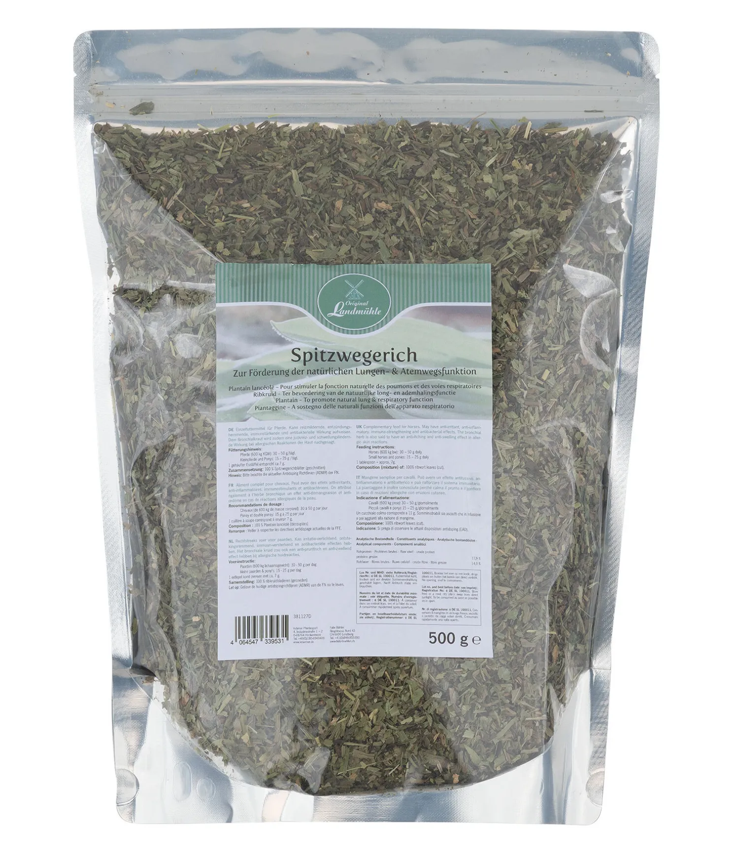Composition : 100 % feuilles de plantain (hachées).