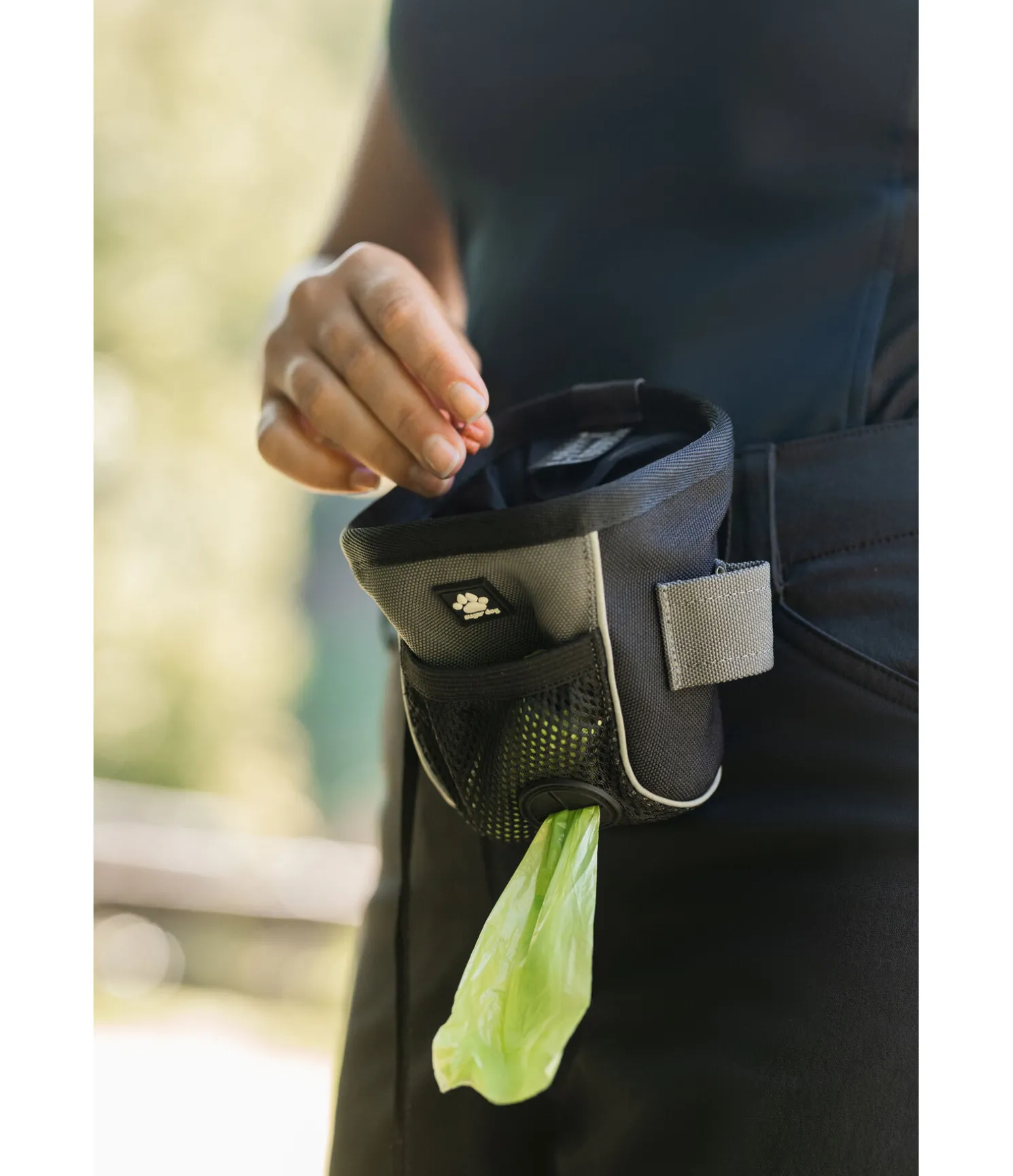 Pochette extrêmement résistante et fonctionnelle pour conserver de la nourriture pendant l’entraînement. Avec clips en métal au dos pour fixer le sac à la ceinture ou l’accrocher à la poche de la veste. Avec cordon de serrage pour fermer rapidement et facilement la pochette. Forme anatomique aplatie pour s’adapter au corps. La pochette dispose aussi à l’avant d’une poche en mesh élastiquée avec un orifice distributeur de sac à crottes. Adaptée pour les aliments gras grâce à sa doublure étanche et lavable. 12.5 x 13 x 7 cm. Matière extérieure 100 % polyester, doublure 100 % nylon.