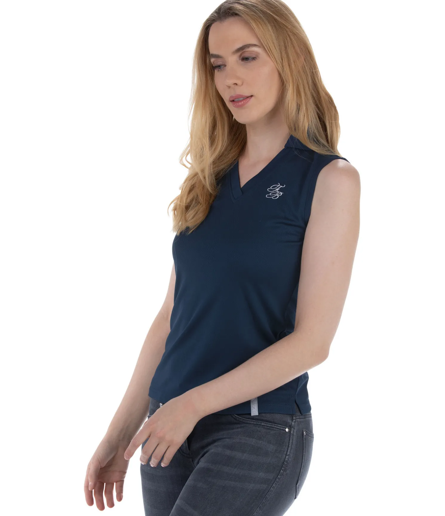 Polo d’équitation technique sans manches à col en V. Matière respirante. Séchage rapide. Spécialement conçu pour la pratique de l’équitation. Signature Felix Bühler sur la poitrine. 100 % polyester.