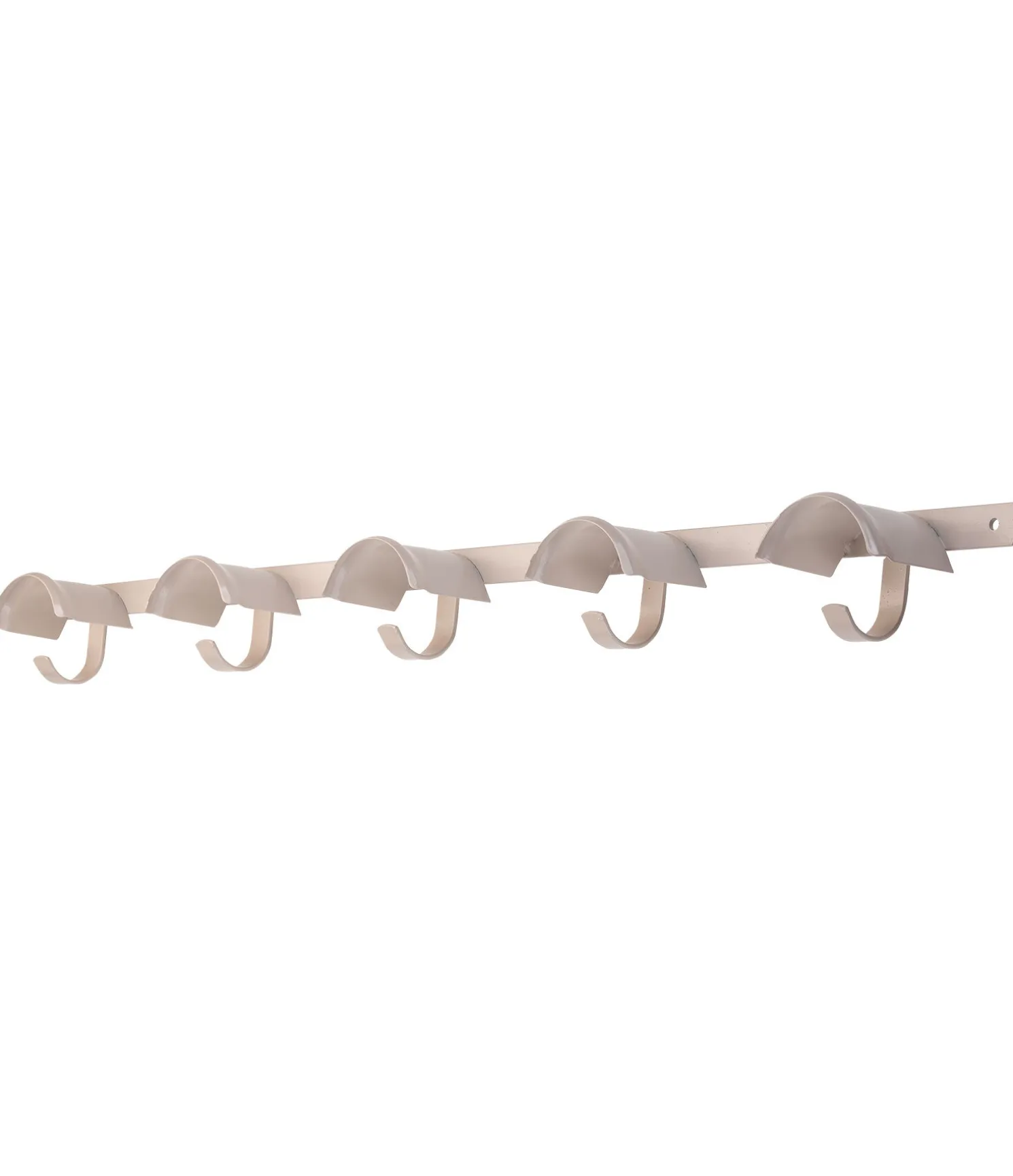 Très beau porte-brides en métal de grande qualité avec 5 supports et 5 crochets. N’abime pas les têtières de vos bridons et licols grâce à la large surface de contact, la courbure du métal évite au harnachement de glisser. 4 trous assurent une fixation simple et sûre. Dimensions : 1 m.