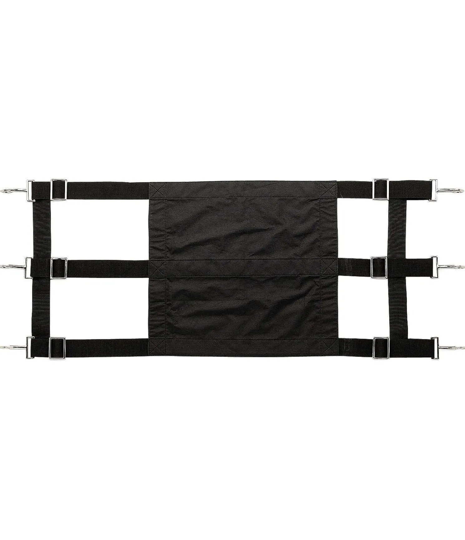 Courroies réglables en nylon avec mousquetons solides pour une parfaite fixation dans l’encadrement de la porte du box. Hauteur 50 cm, largeur 95 à 120 cm.