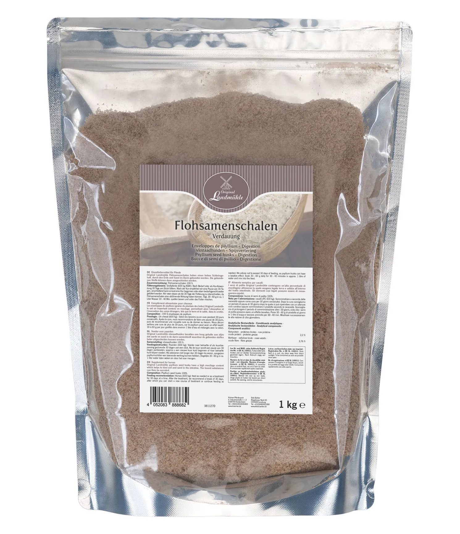 Recommandations de dosage : cheval (600 kg) selon les besoins ou lors d’une cure de 30 jours : laisser gonfler quotidiennement 30 à 60 g de psyllium dans environ 1 litre d’eau pendant 30 à 40 minutes et mélanger à la nourriture.