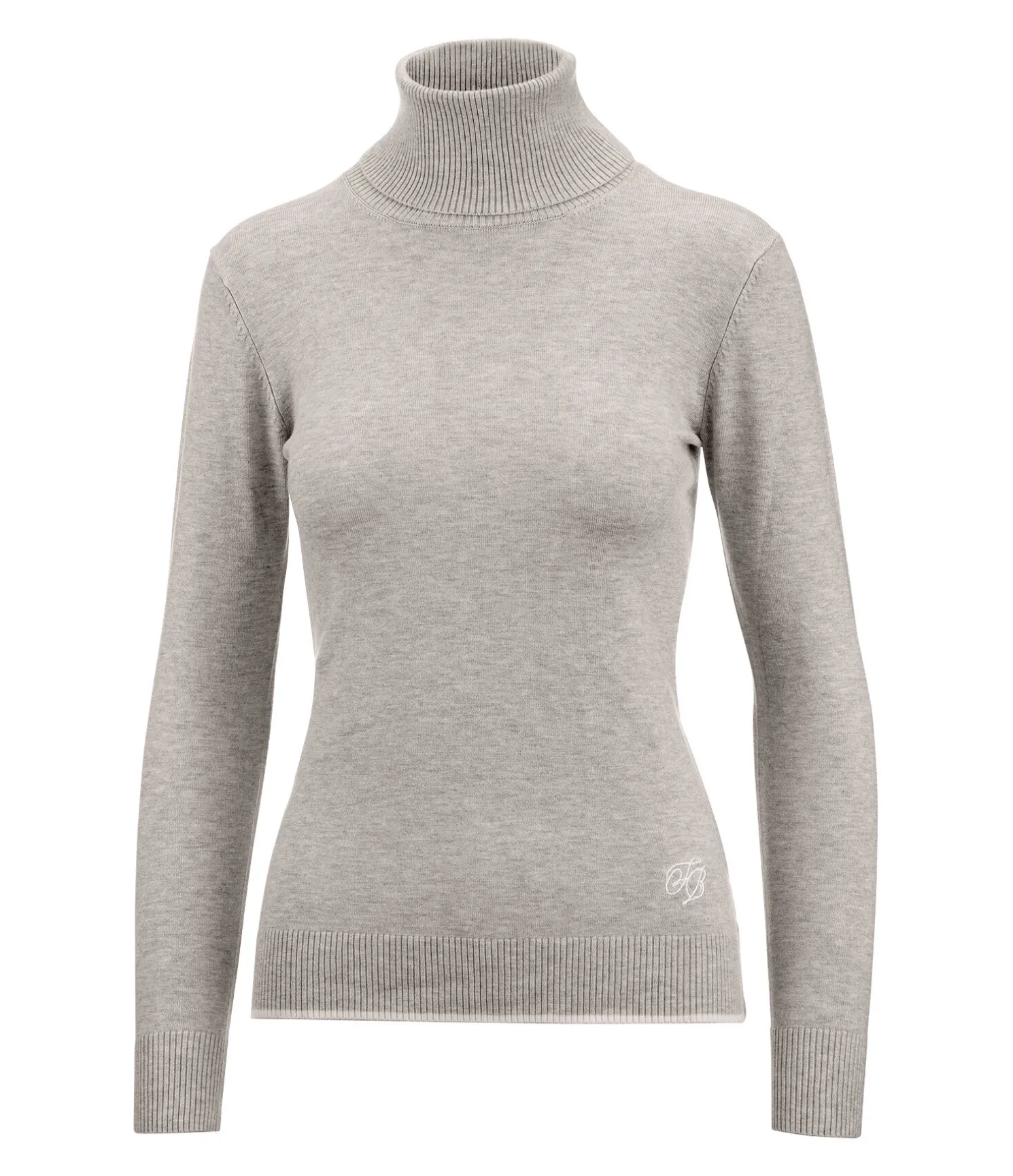 Pull-over doux à col roulé. Aspect chiné. Logo brodé. Finition côtelée en bas des manches et à la taille. Bordure de couleur contrastante à la taille. 80 % viscose, 20 % nylon.