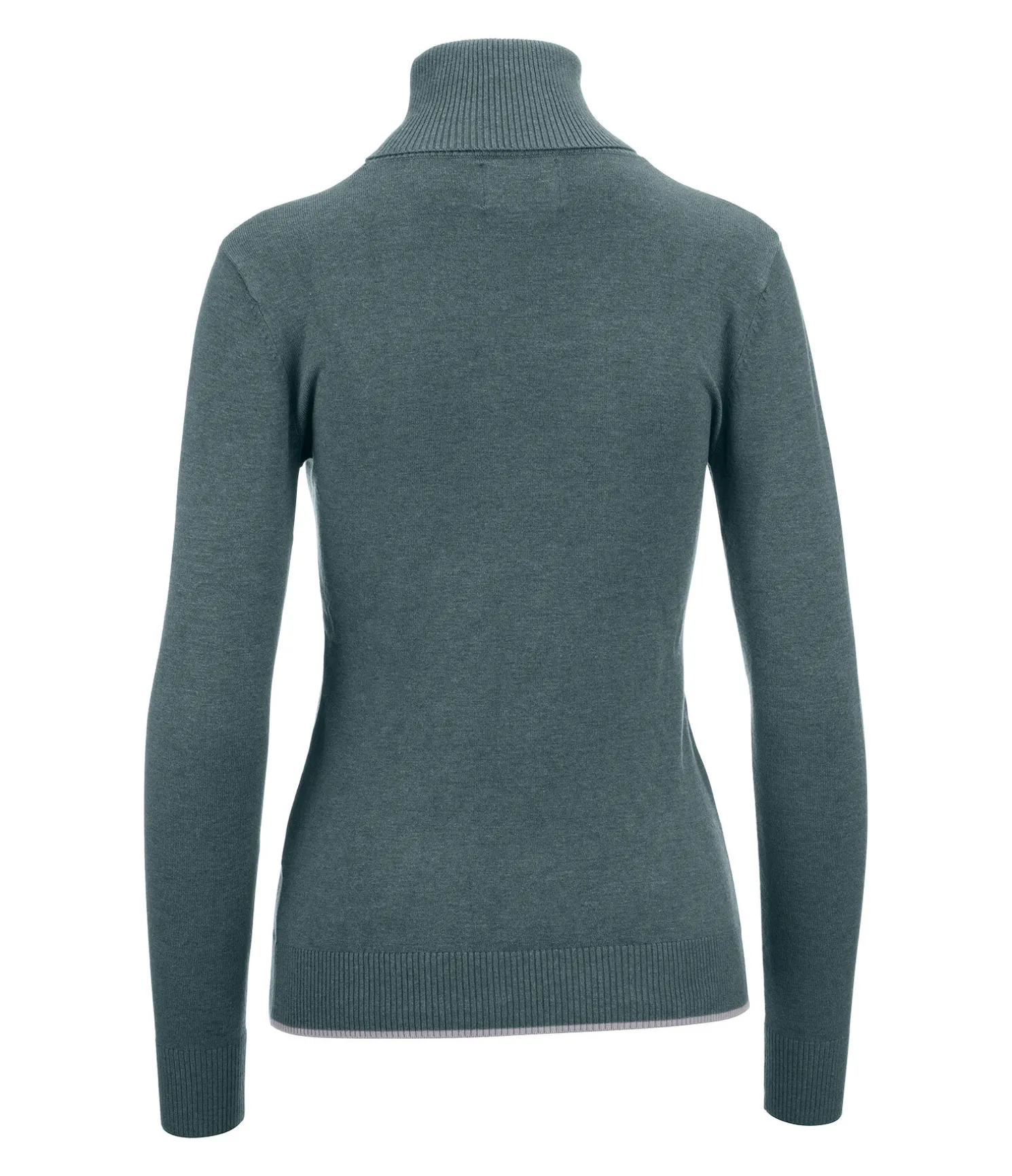 Pull-over doux à col roulé. Aspect chiné. Logo brodé. Finition côtelée en bas des manches et à la taille. Bordure de couleur contrastante à la taille. 80 % viscose, 20 % nylon.