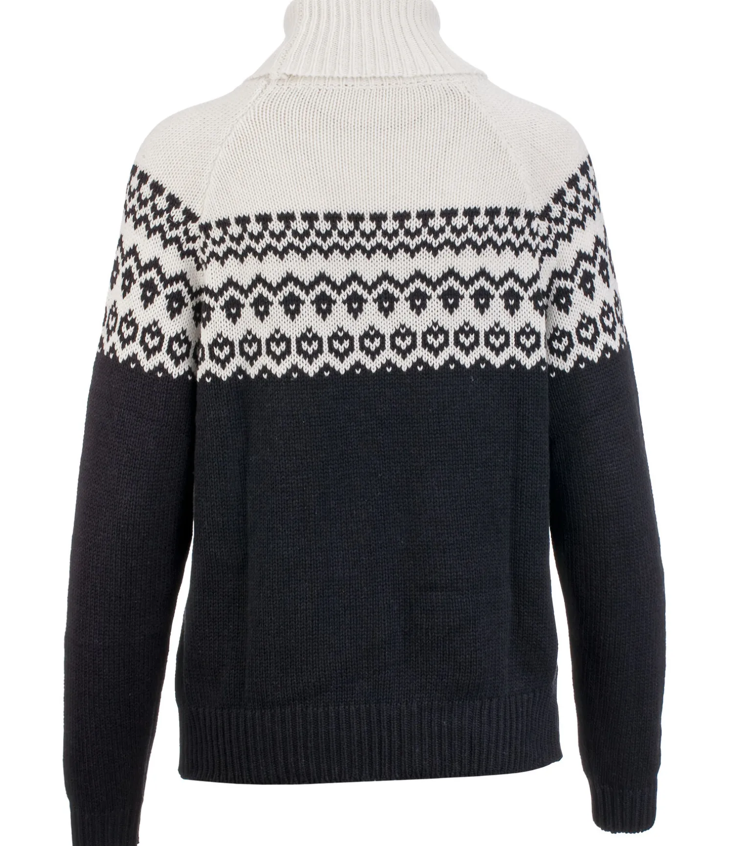 Pull-over confortable à coupe ample avec col roulé et motif nordique. 53 % coton, 40 % viscose, 7 % nylon.