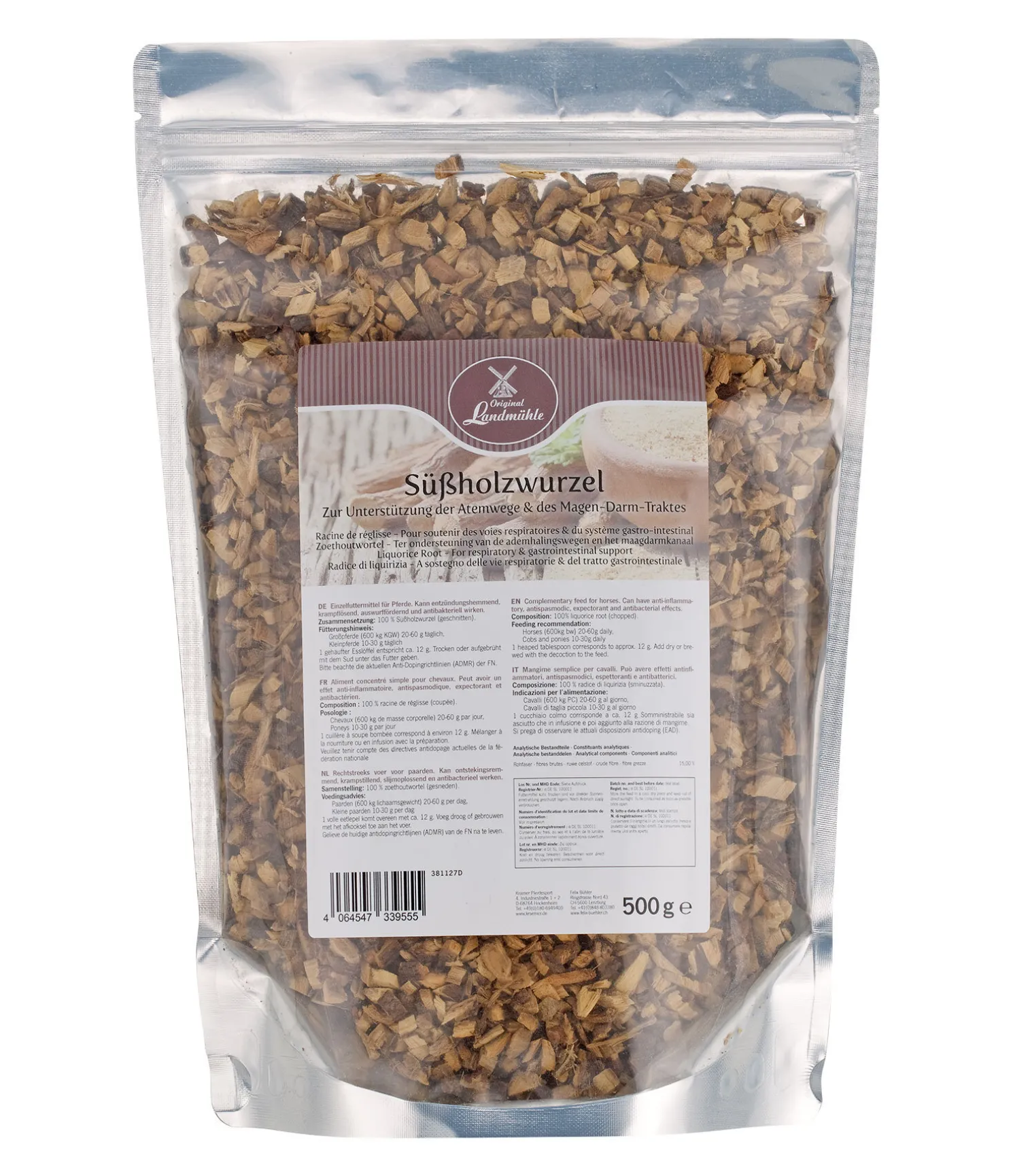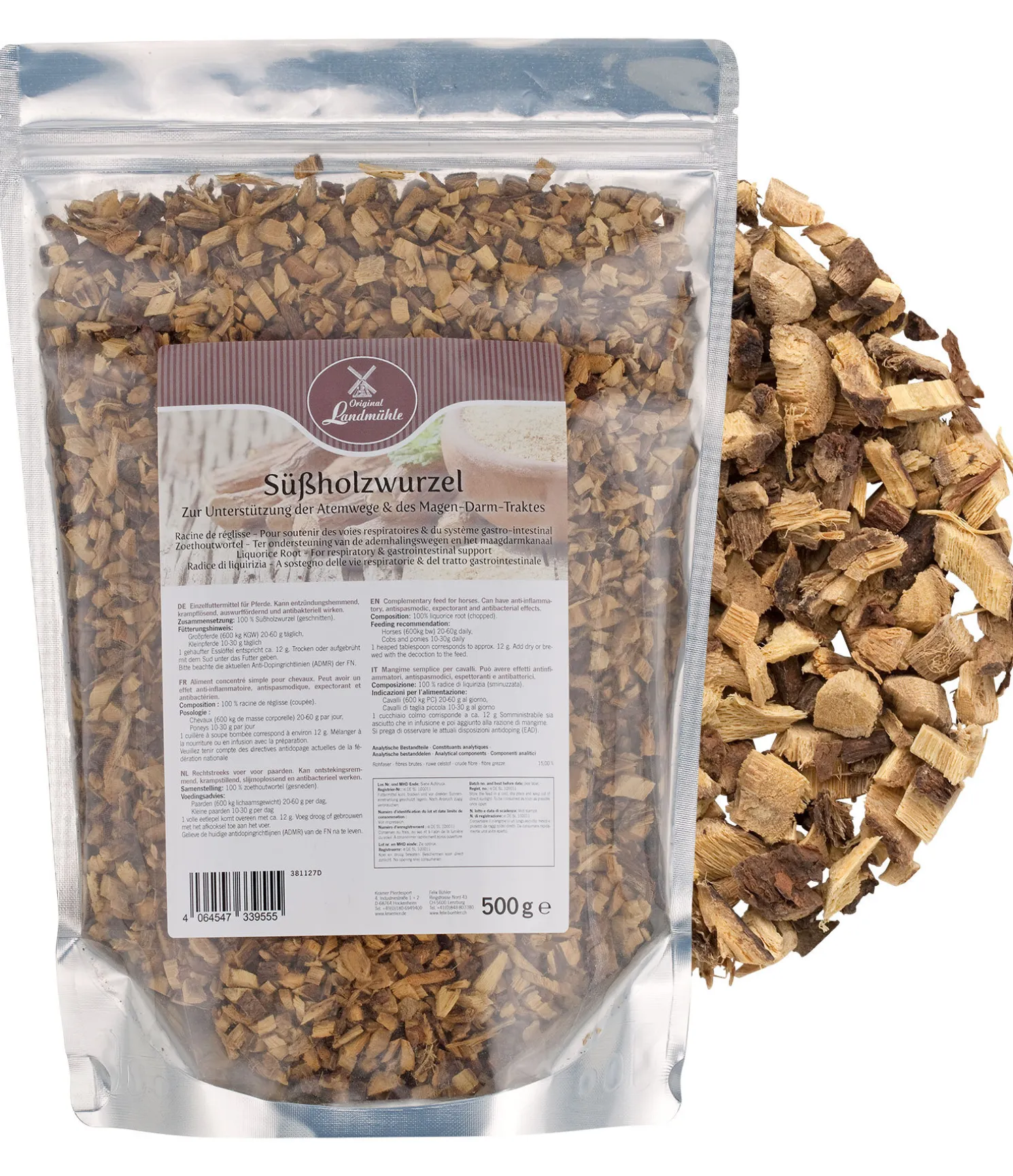 1 cuillère à soupe bombée correspond environ à 12 g. Ajouter à la nourriture, sec ou en décoction. Ne pas donner pendant plus de 3 semaines.