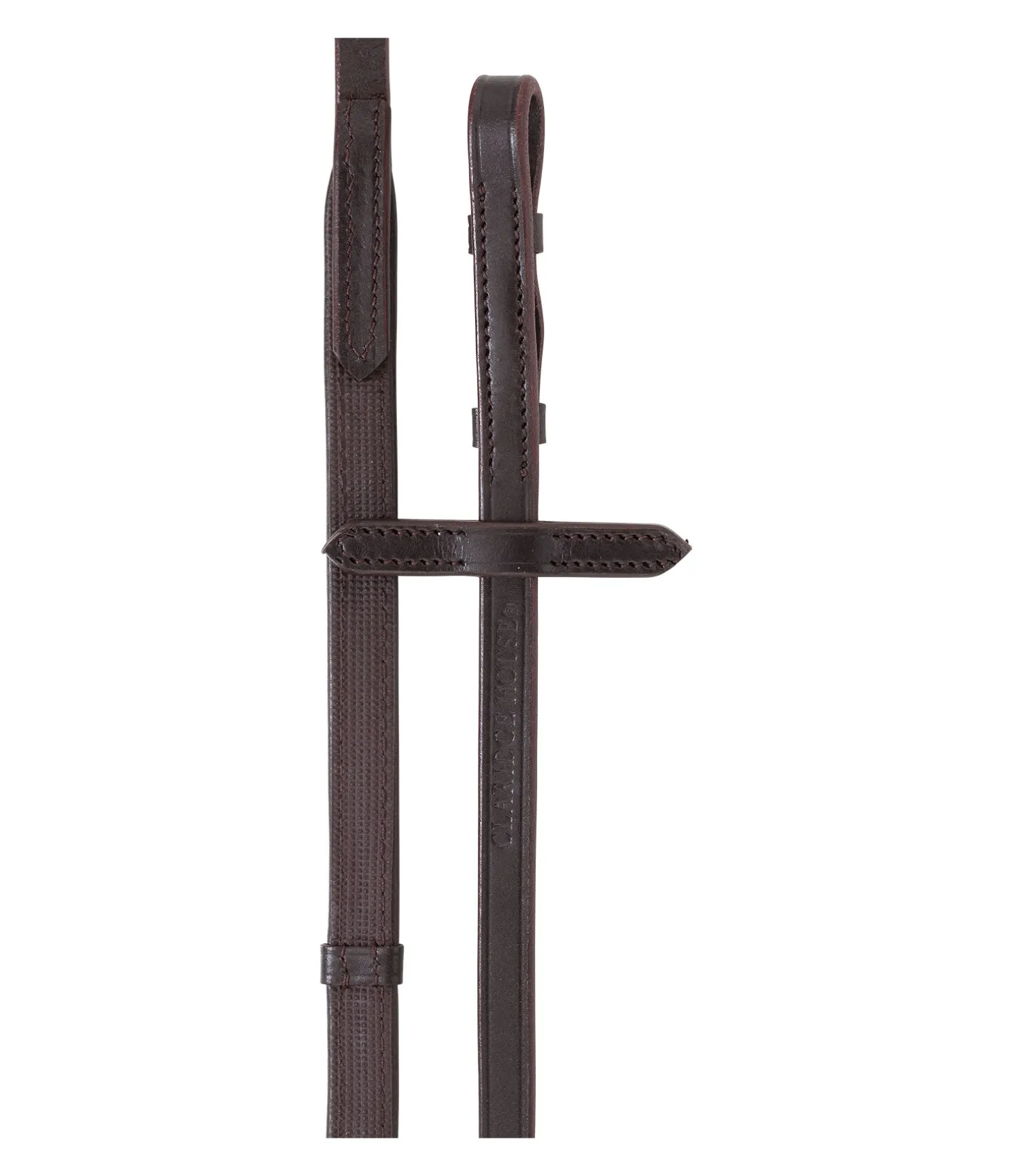 Rênes antidérapantes particulièrement agréables en main. Revêtement en caoutchouc sur une face. Avec arrêtoirs en cuir et arrêtoirs de martingale. Largeur de 1,5 cm. P (poney – longueur 260 cm), F (full – longueur 290 cm), XF (taille maxi – longueur 305 cm).