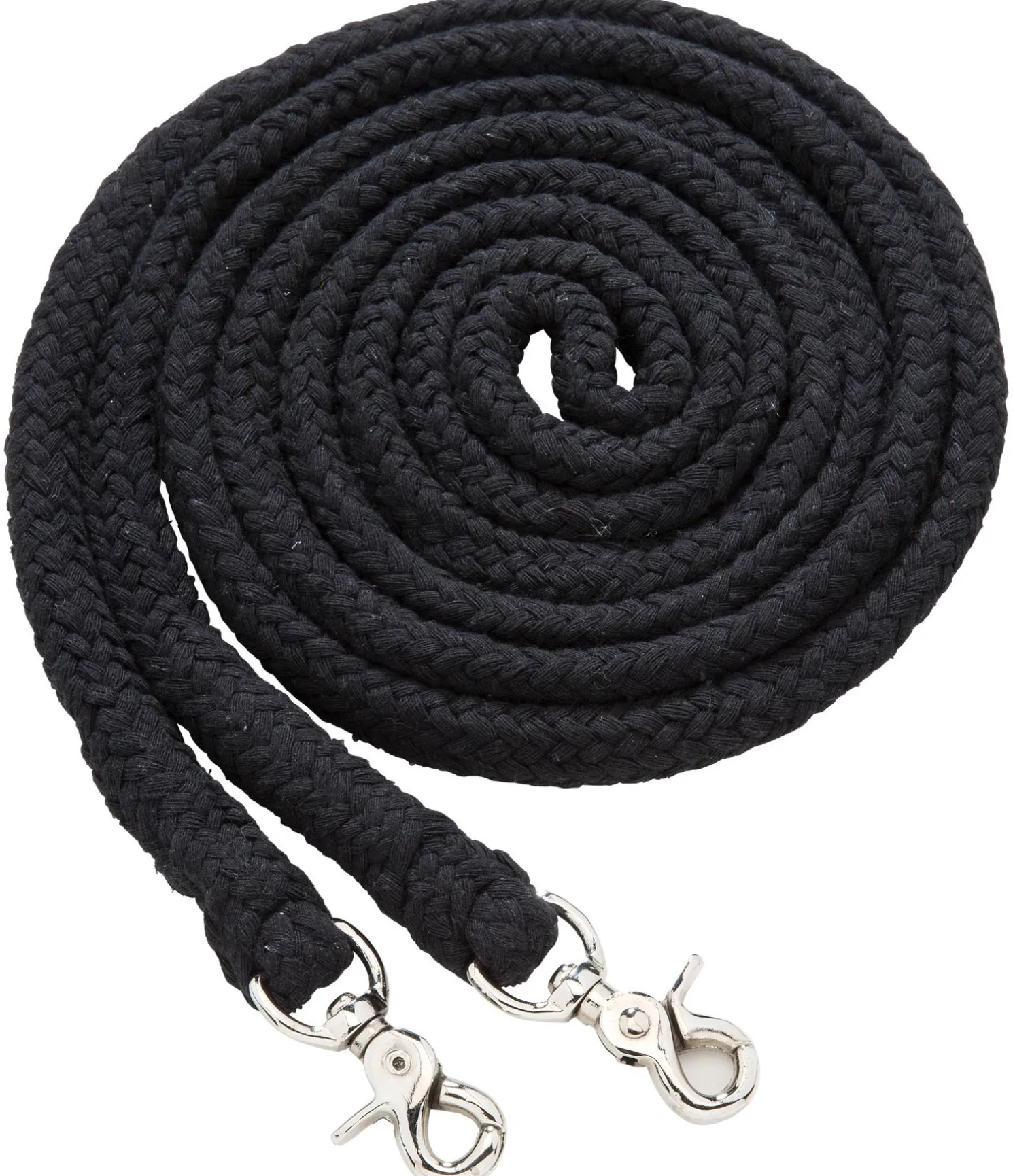 Rênes en coton fermées. Douces et pratiques avec des mousquetons mexicains argentés. Full = 300 x 2 cm, Poney = 200 x 2 cm.