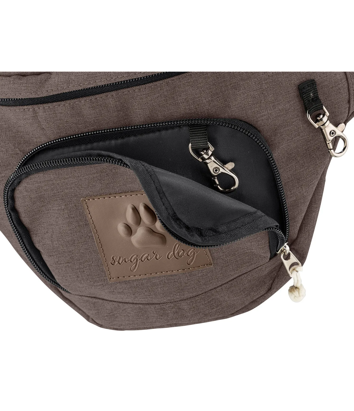 Idéal pour l’entraînement à l’agility ou la promenade quotidienne : sacoche ventrale fonctionnelle avec une grande poche qui offre suffisamment d’espace de rangement pour les jouets et autres, doublée d’une petite poche intérieure séparée par une fermeture à glissière pour les friandises. La petite poche séparée à l’avant, idéale pour le téléphone portable ou les clés, permet de ranger ces objets à l’abri sans contact avec les friandises. Équipée de 2 petits mousquetons pour fixer un clicker ou autre et d’un emplacement pour les sacs à crottes. La doublure intérieure lavable et déperlante est particulièrement facile à entretenir et permet donc de transporter des jouets pour chien sales. Compacte et légère, la sacoche ne gêne en aucun cas les mouvements du propriétaire. La sangle élastique réglable en longueur avec fermeture par clip permet de la mettre et de l’enlever rapidement. 32 x 18 x 8 cm.
