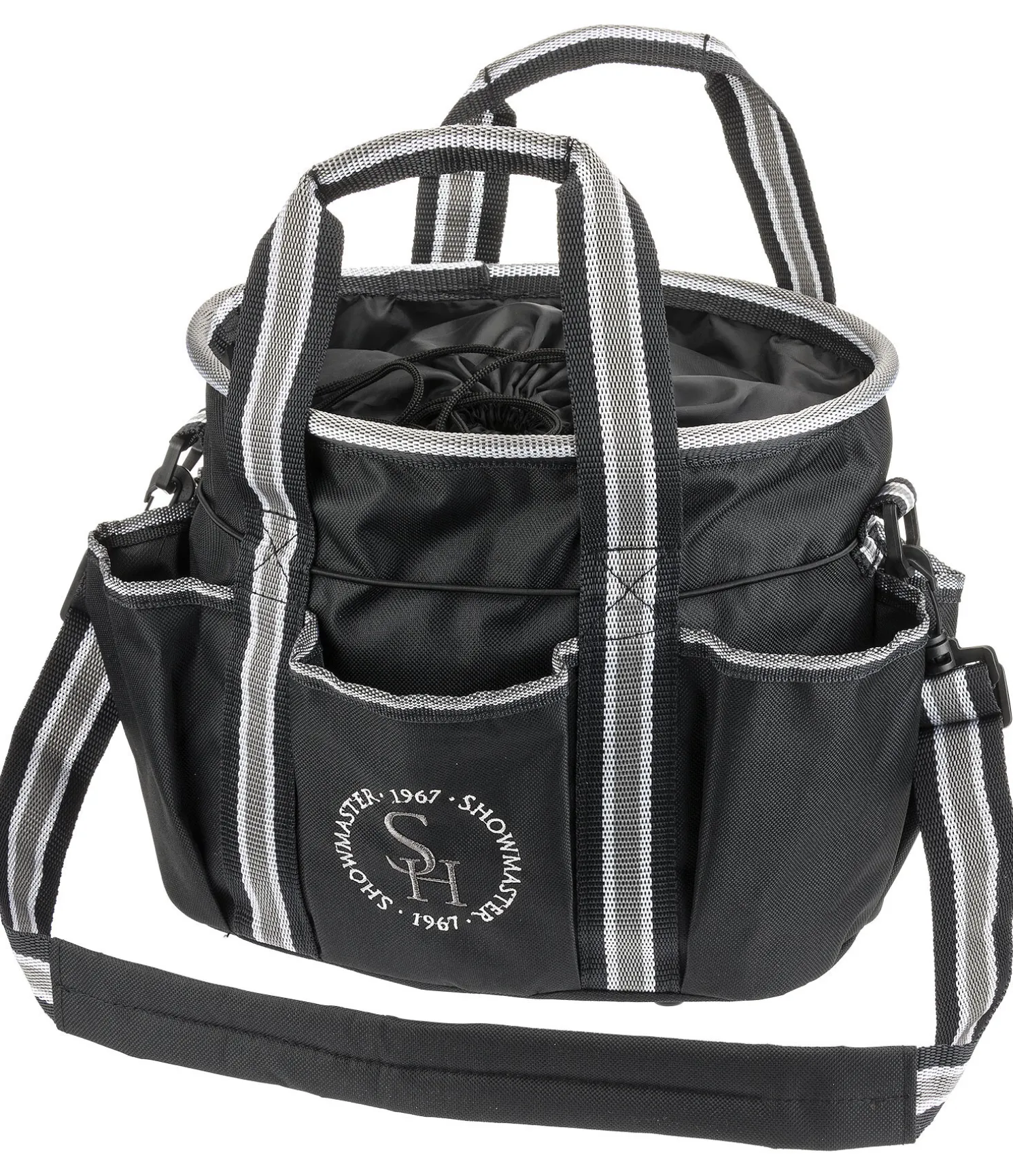 Sac de pansage au look sportif confectionné dans une matière anti-salissures. Avec 6 poches extérieures, 2 anses et une bandoulière amovible. Refermable par le haut au moyen d’un cordon de serrage. 28 x 18 x 25 cm.