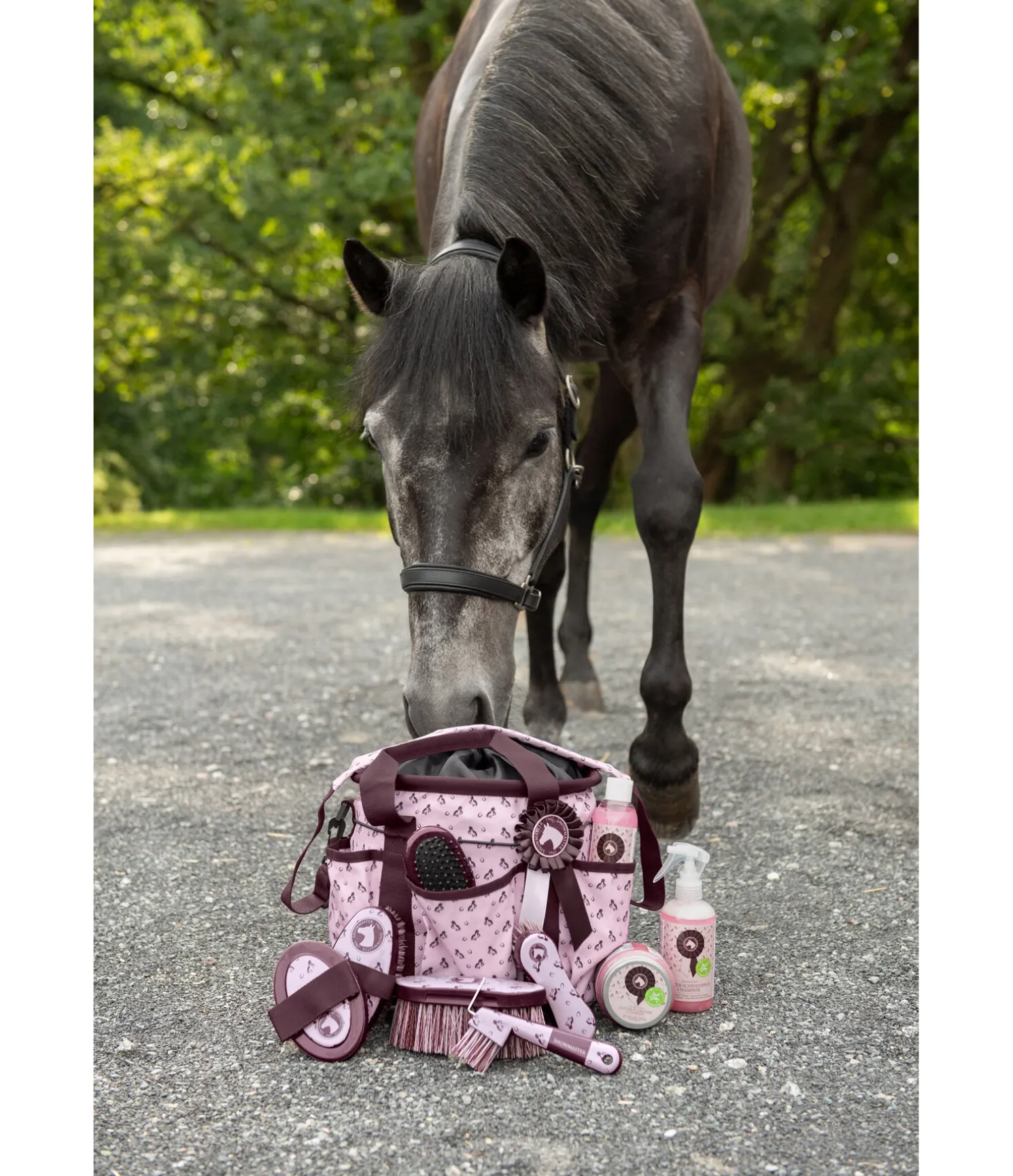 Sac de pansage pratique spécialement conçu pour les enfants avec imprimé de petits chevaux et de fers à cheval et flot assorti pour les petits champions. Les 6 poches extérieures permettent d’accéder rapidement aux accessoires essentiels. Équipé de deux poignées et d’une bandoulière rembourrée amovible. Fermeture sur le dessus par cordon de serrage. 28 x 18 x 25 cm. Matière anti-salissures. 100 % polyester.