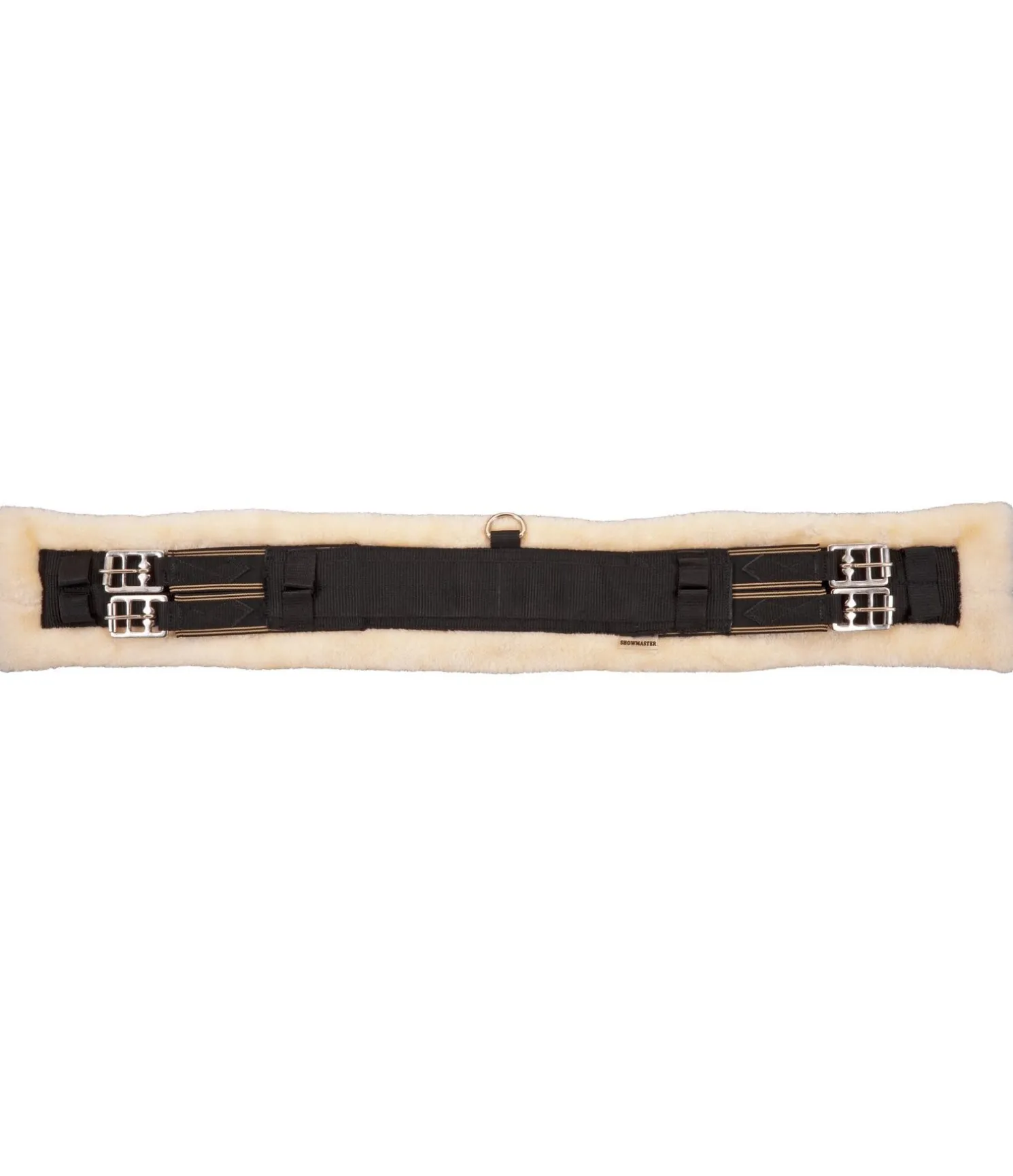 Sangle en nylon résistante à la déchirure avec empiècements élastiques des deux côtés, anneau central en D et boucles à rouleau. Doublure en polaire Teddy extra douce. Largeur 14,5 cm.