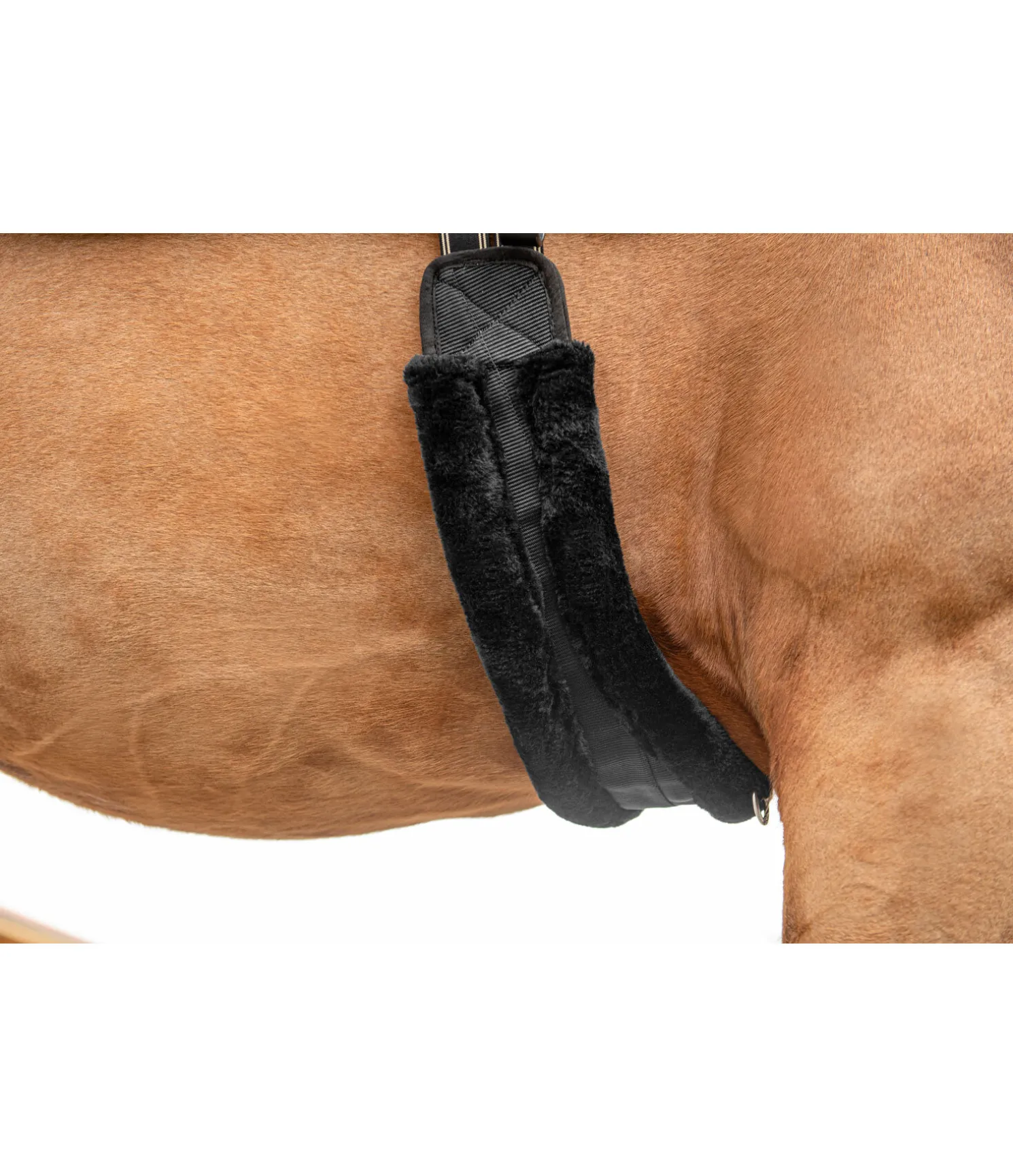 Sangle anatomique en nylon. Empiècements élastiques des deux côtés. Anneau central en D et boucles à rouleau. Doublure en polaire Teddy extra-douce. Évite les irritations dues aux frottements. Largeur de la sangle 11-15 cm.