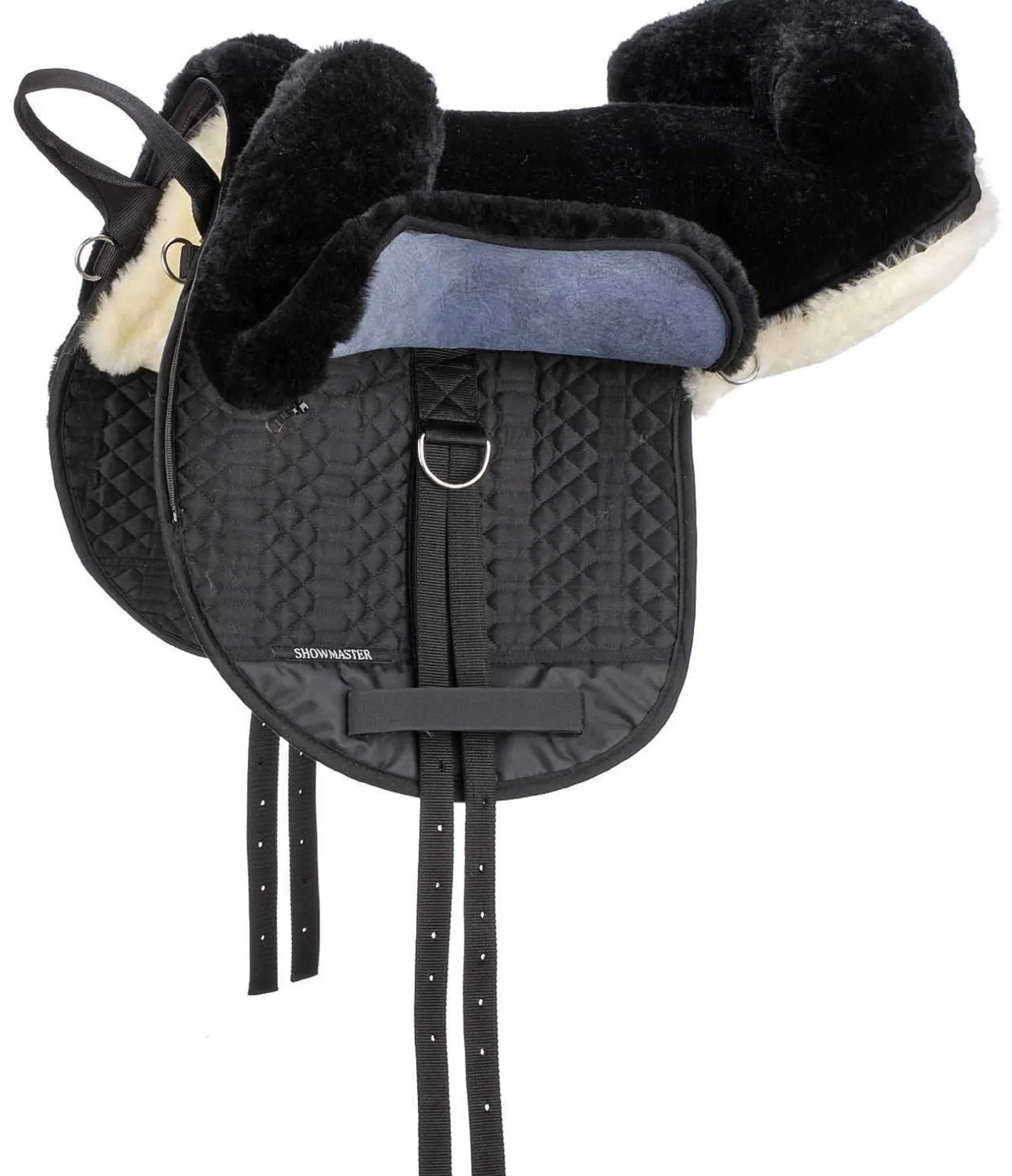 Selle en véritable fourrure d’agneau améliorant de manière significative la communication entre le cavalier et le cheval. Extérieur et dessous 100 % fourrure d’agneau. Taquets à l’avant pour un maintien sûr et un confort optimal. Inserts épais amovibles et repositionnables pour un parfait ajustement et un grand confort pour le cheval. Avec couteaux d’étrivières, deux anneaux en D à l’avant, deux anneaux en D à l’arrière et longs contre-sanglons.