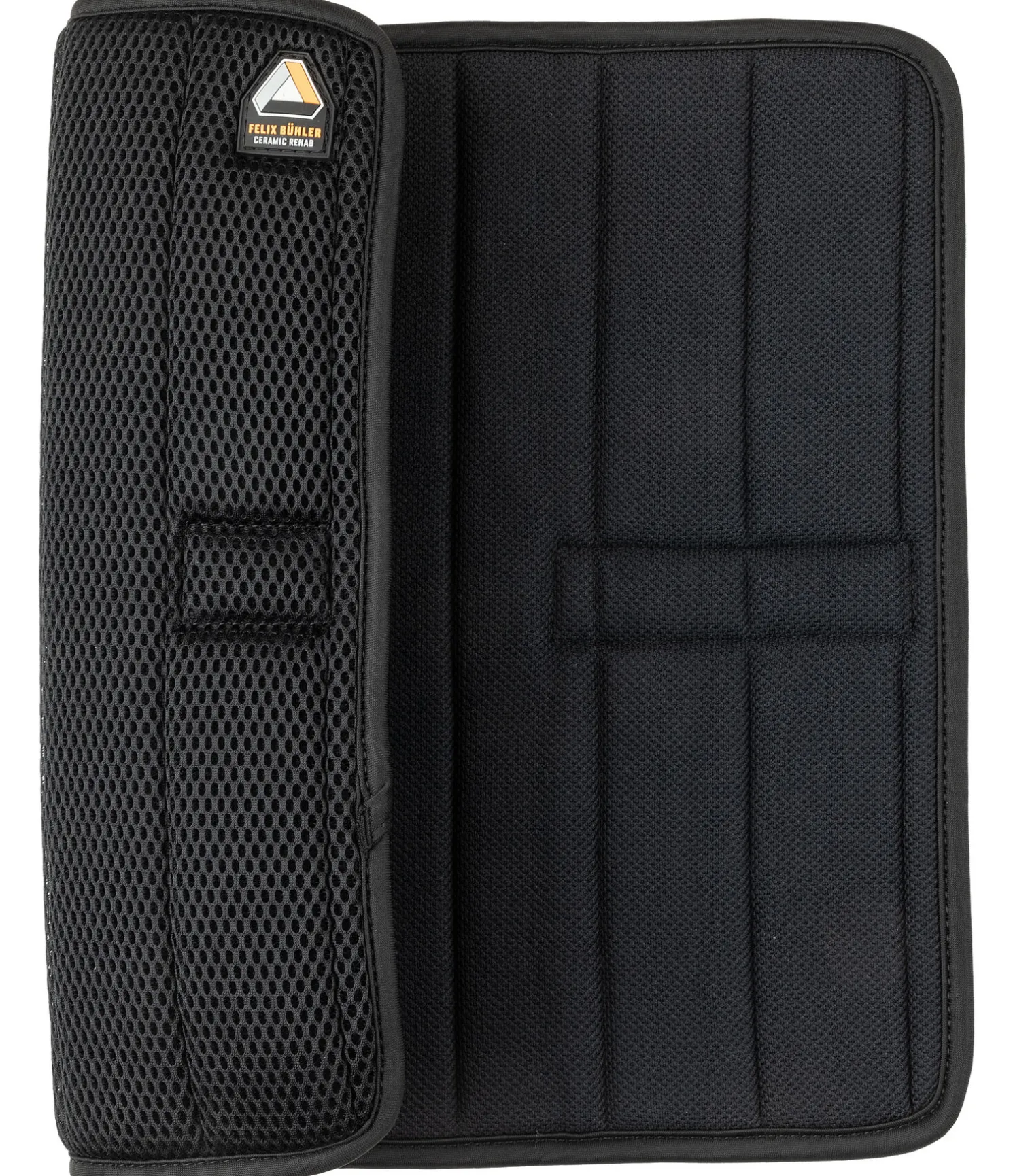 Sous-bandages au look sportif en tissu à larges mailles alvéolées très respirant, permettant d’éviter une accumulation excessive de chaleur tout en protégeant les membres. Doublure absorbante avec fibres de céramique permettant une meilleure circulation sanguine. Peut aider à éviter les blessures aux tendons et améliorer la récupération. Fixation par pattes auto-agrippantes pour une mise en place facile et rapide. 37 x 44 cm. 100 % polyester. Vendus par paire.