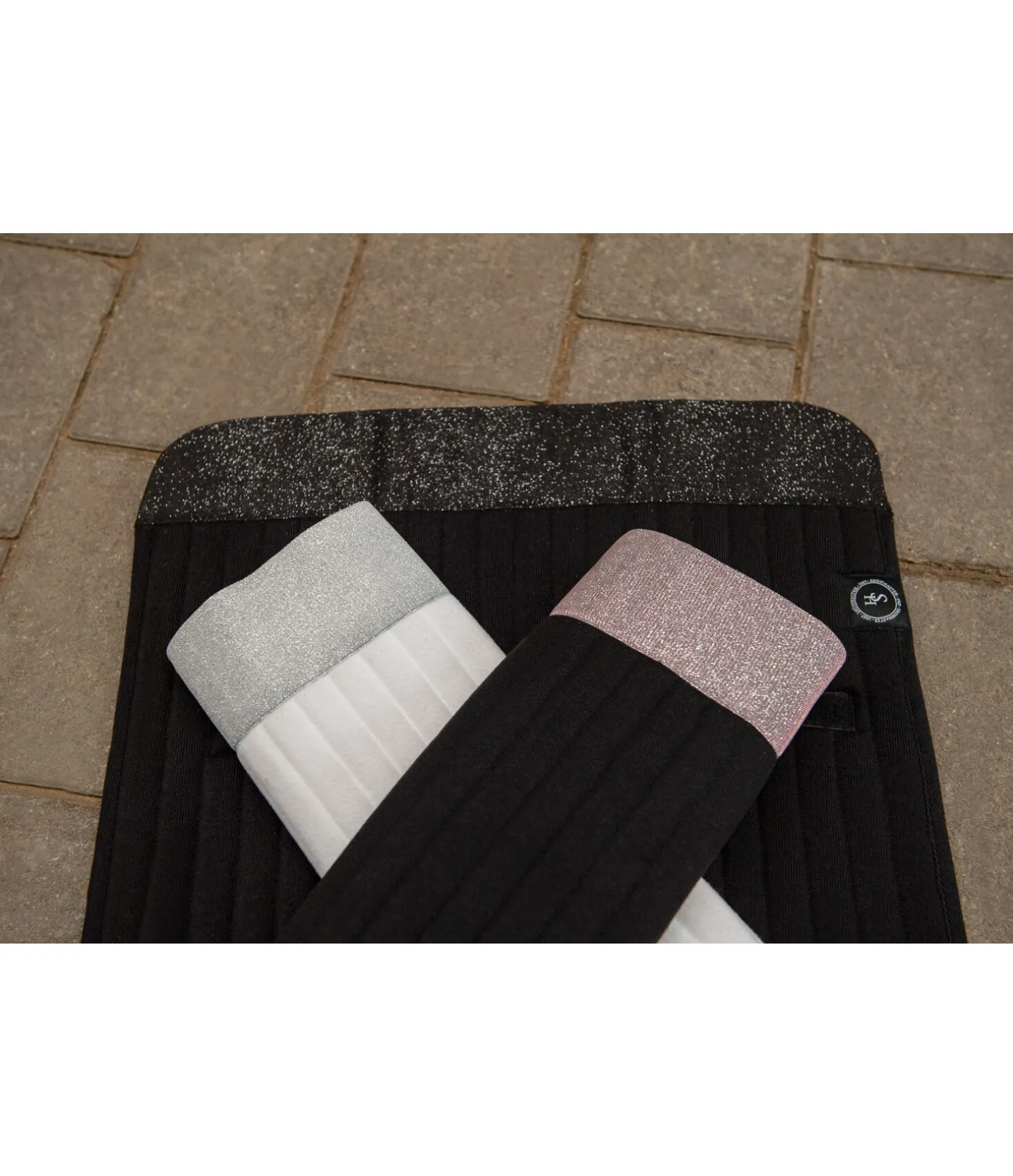 Sous-bandages auto-agrippants avec une jolie bordure scintillante en haut. L’intérieur est en tissu éponge pour absorber l’humidité. 100 % polyester. 47 x 45 cm.