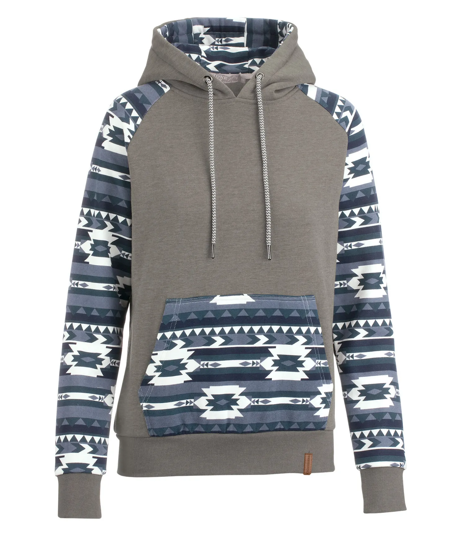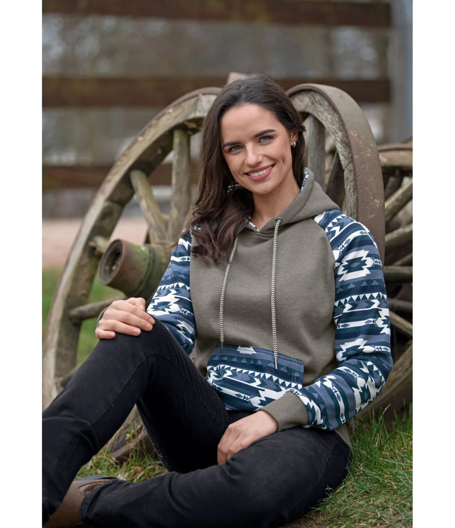 Sweat à capuche avec motif aztèque. Poche kangourou. Finition en bord-côte à la taille et en bas des manches. 60 % coton, 40 % polyester.