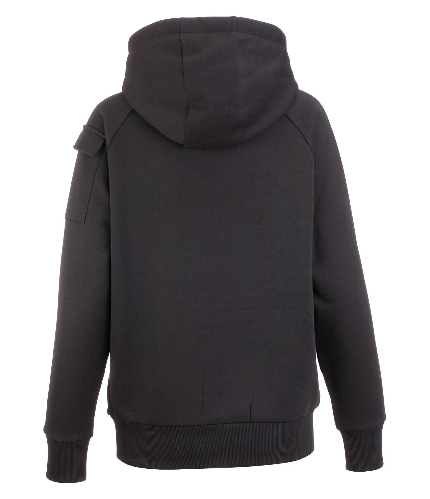 Sweat à capuche sportswear. Matière respirante. Logo RANCH-X en cuir sur la poitrine. Capuche ajustable par cordon de serrage. Poche kangourou. Poche zippée pratique sur la manche. Finition en bord-côte sur le bas des manches. 65 % coton, 35 % polyester.