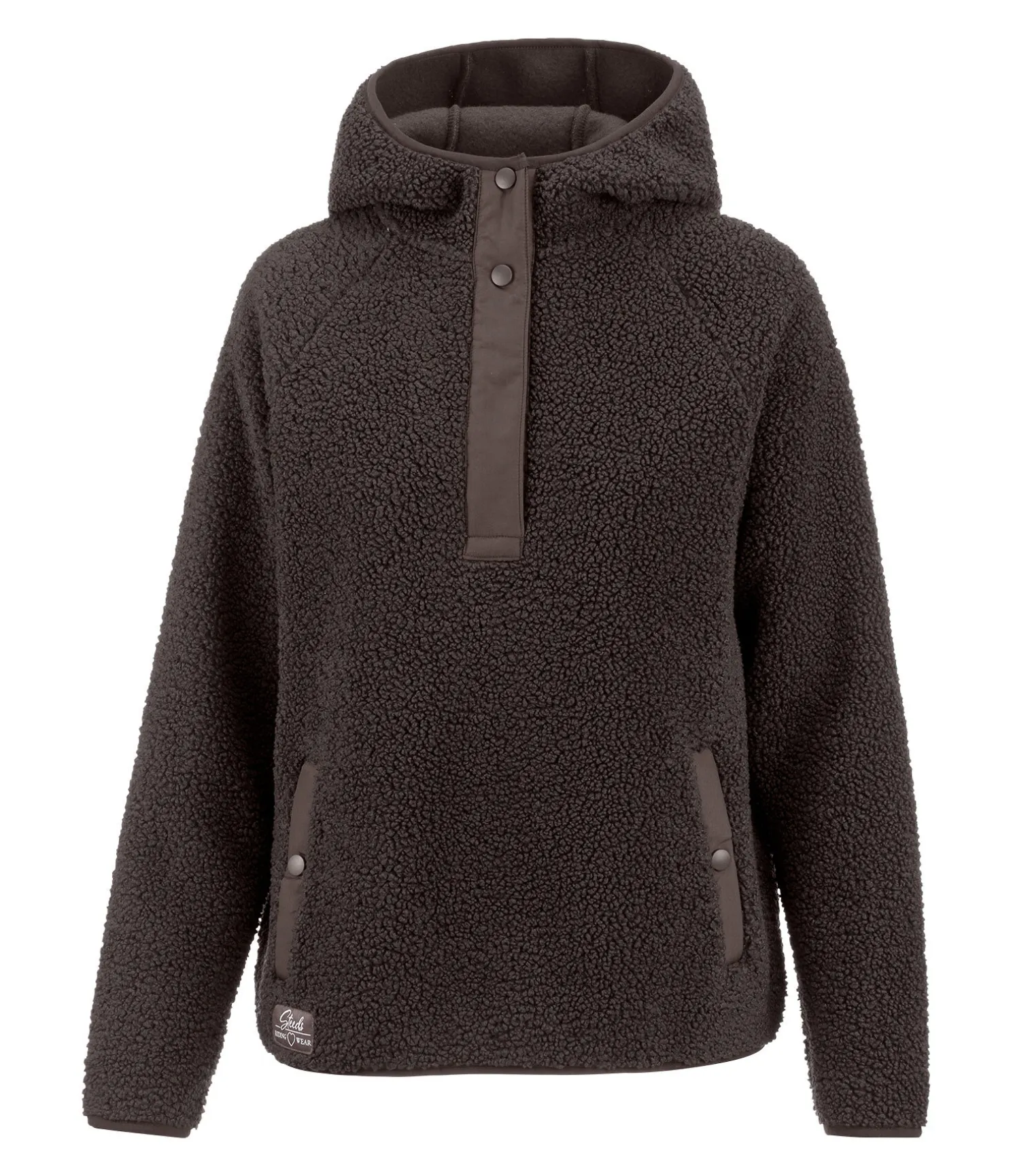 Sweat à capuche en tricot polaire Teddy douce. Patte de boutonnage avec boutons-pression de couleur contrastante. Deux poches latérales avec bouton-pression. Bord élastiqué de couleur contrastante sur le bas des manches, la capuche et l’ourlet. Étiquette STEEDS à l’ourlet. 100 % polyester.